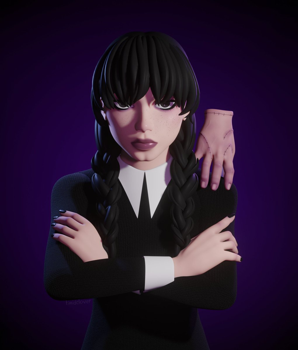 ✨Alright, gonna leave this here. Not completely happy with the face, but it's alright. Commissions are open! Dm me. And pls RT, it is so hard to get seen. #Wednesday #fanart #b3d #blender3d #characterdesign