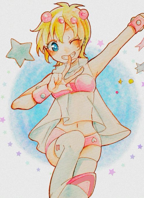過去絵アゲハちゃん再掲~🛸 CS7からポップン始めたので金髪の方のアゲハちゃんばっかり描いてました🌟 #popn_art