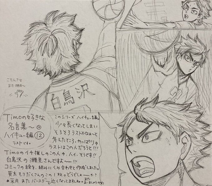 0 6 古館春一先生“ハイキュー‼︎”より「瀬見英太“Timo好き名言・名シーン集‼︎”︎」Part…① #ハイキュー #ハイキュー好きな人と繋がりたい #白鳥沢学園高校 #瀬見英太 #アート #アトリエ #模写 #イラスト #模写イラスト #色紙 #色紙絵 #絵 #アナログ絵 #お絵描き #色鉛筆 #鉛筆画 #Note #毎日更新 22/10/21 23:38