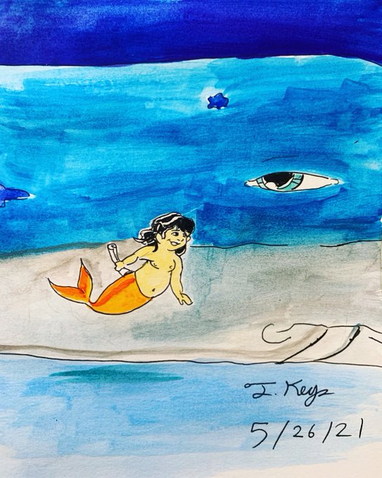 Day 24 of #mermay everyone enjoys a good book every now and then #merman #mermay2021 #watercolorpainting #art #watercolor #AsianPacificHeritageMonth #AAPIHM #day24