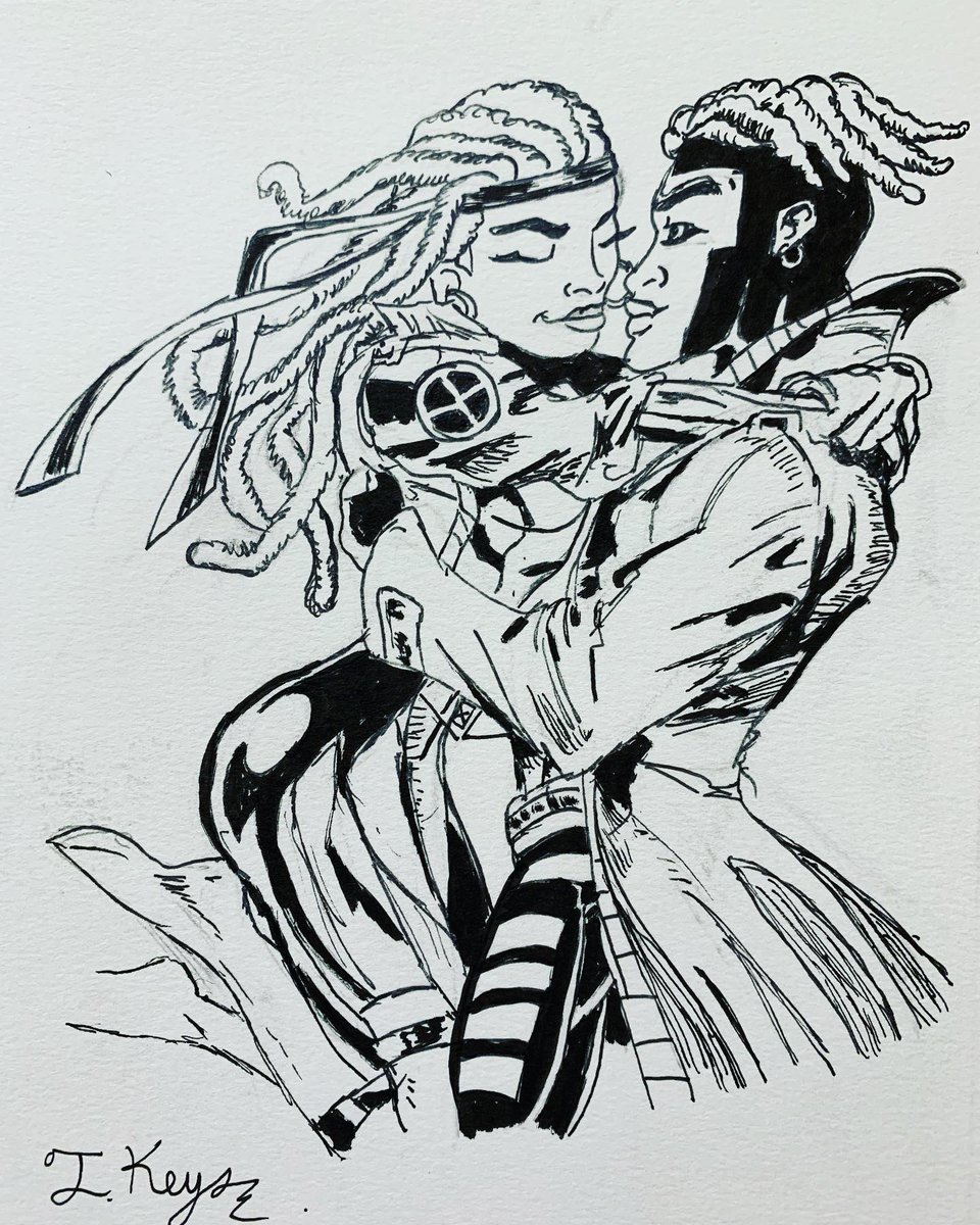 Pencils to inks to color of one of my favorite drawings during blacktober of Rogue and Gambit #illustration #pencils #pencilsketch #pencildrawing #drawing #inks #inkdrawing #inking #marvelcomics #xmen #blacktober #fanart
