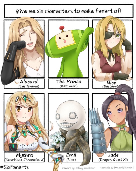 And... it's complete! This was a much needed distraction, thank you for all the great suggestions for characters to draw! >_< #SixFanarts