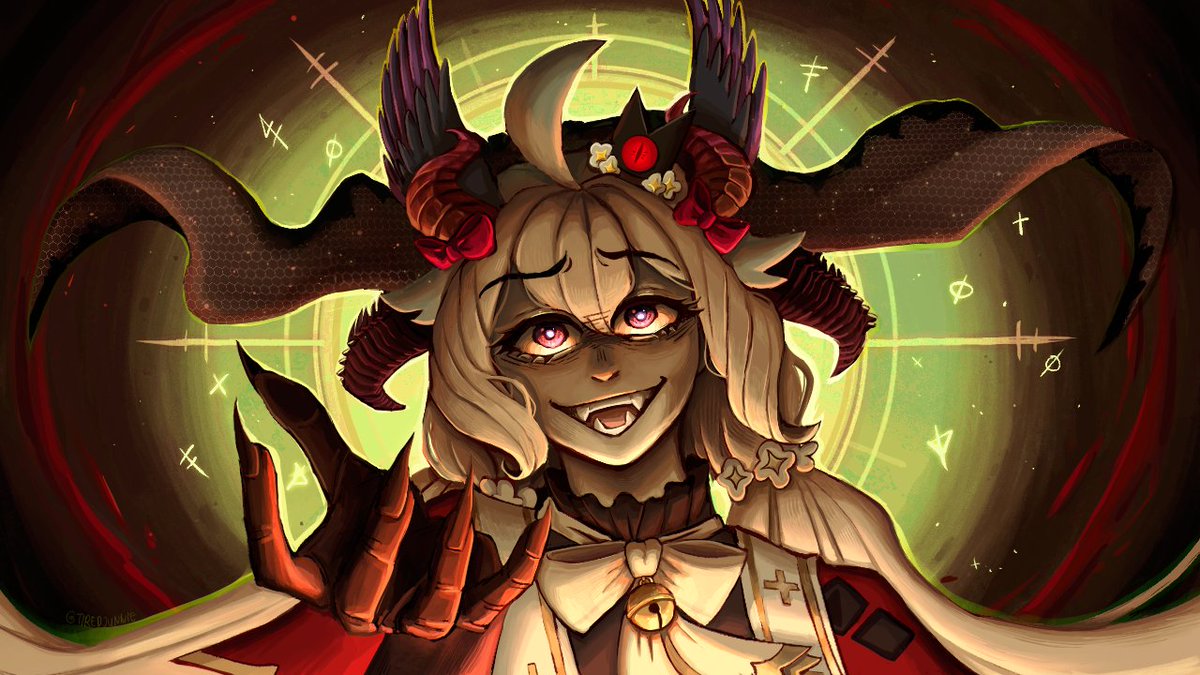 ✨JOIN ME✨ As you held lady Enna's hand, a ritual circle is summoned beneath your feet, it drags you through a space of darkness and distorted time. Then, finally, you have arrived at the cult of ETTEUOLA. . #エナーアート #Palouette #vtuber #fanart #CultoftheLamb