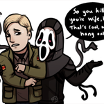 He wants to order. But you want to go home to bed after a long night murdering people. (masked version below) #Ghostface #dannyjohnson #dwightfairfield #ghostfield #deadbydaylight #dbd #dbdfanart #memeredraw