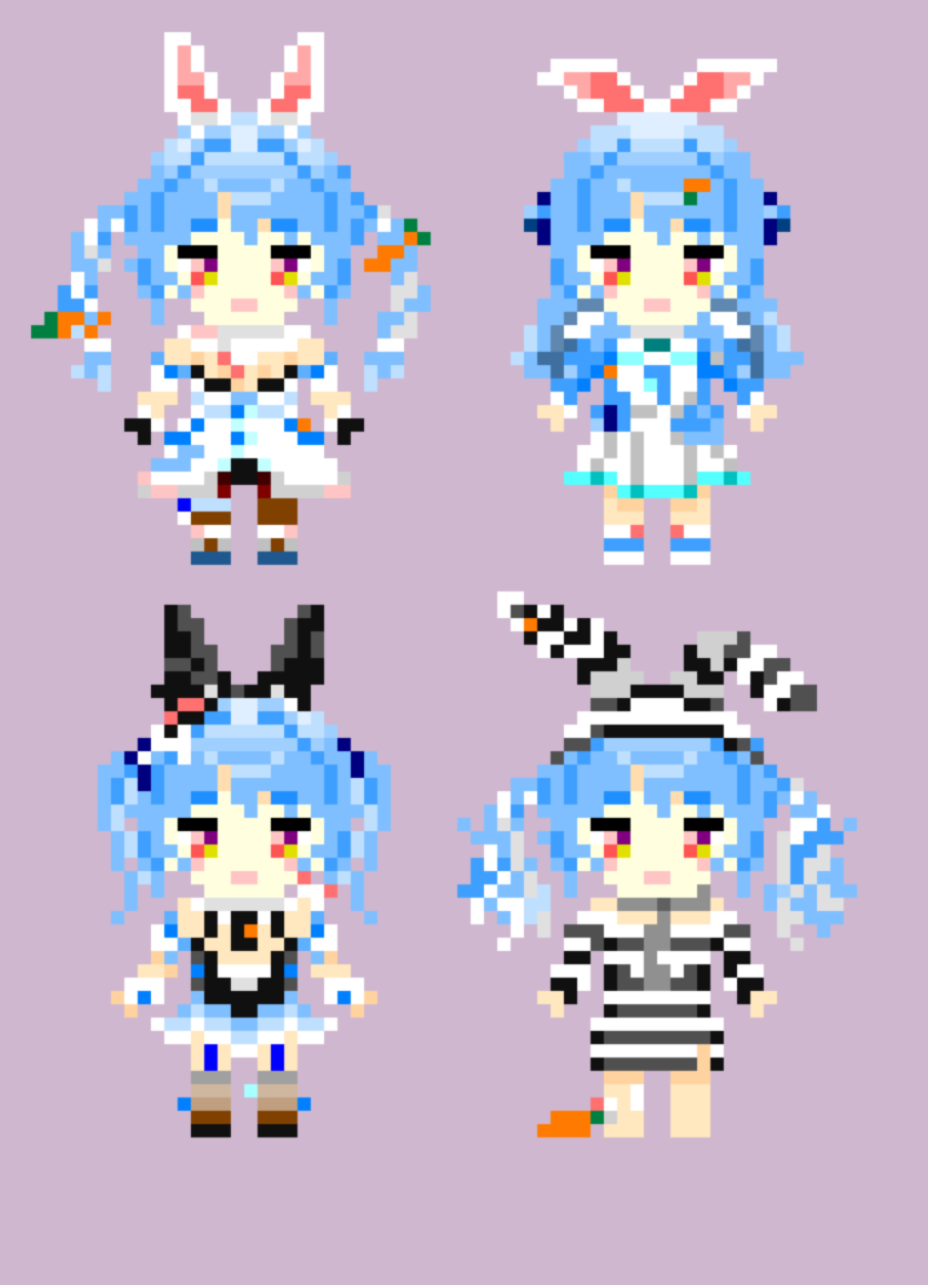 ぺこらの新衣装が可愛かったので、これまでのぺこらの衣装と一緒にドット絵描いた! #ぺこらーと #兎田ぺこら新衣装