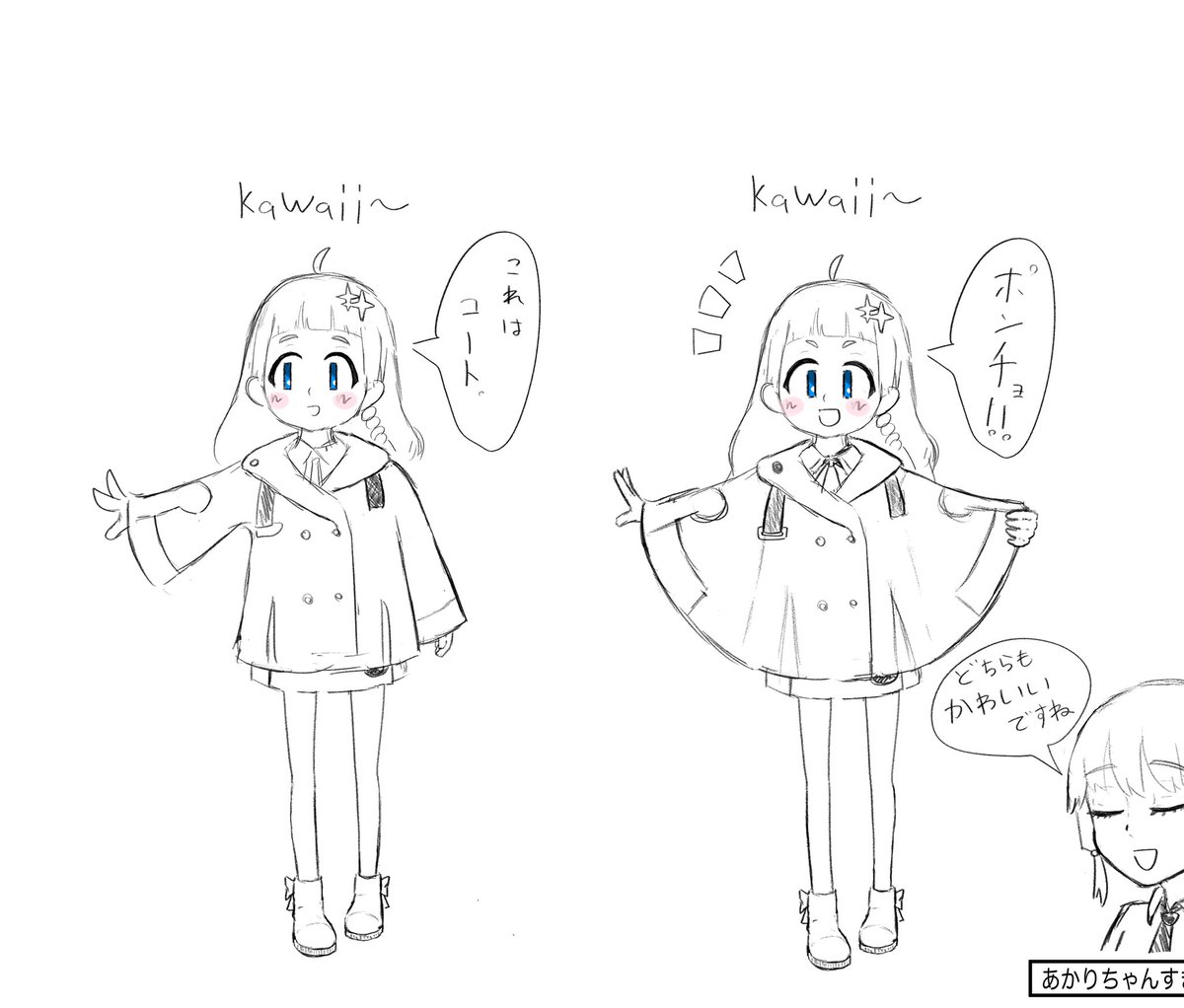 あかりちゃんのポンチョをずっとただのコートだと思っていました…。切腹します…うぅ