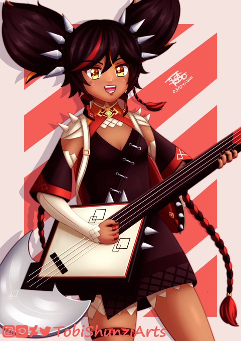Xinyan - Genshin Impact Fan Art ○ Liyue's one and only rock artist, Xinyan! Also one of my favourite waifus in the game. Hope we get a hangout event or story quest with her soon. ○ #AnimeArt #GenshinImpact #genshinimpactfanart #Xinyan