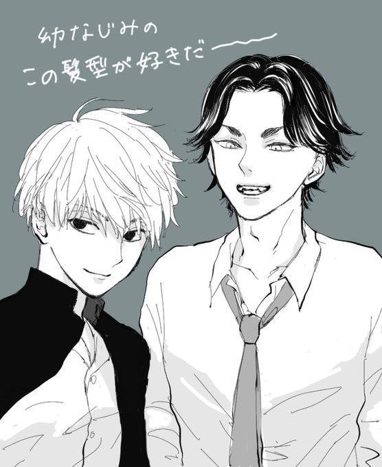 短髪幼なじみ+ばじふゆ マイキーとばじさんのこの髪型がスキなので中3verで描いたつもりなんだけど…