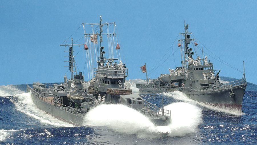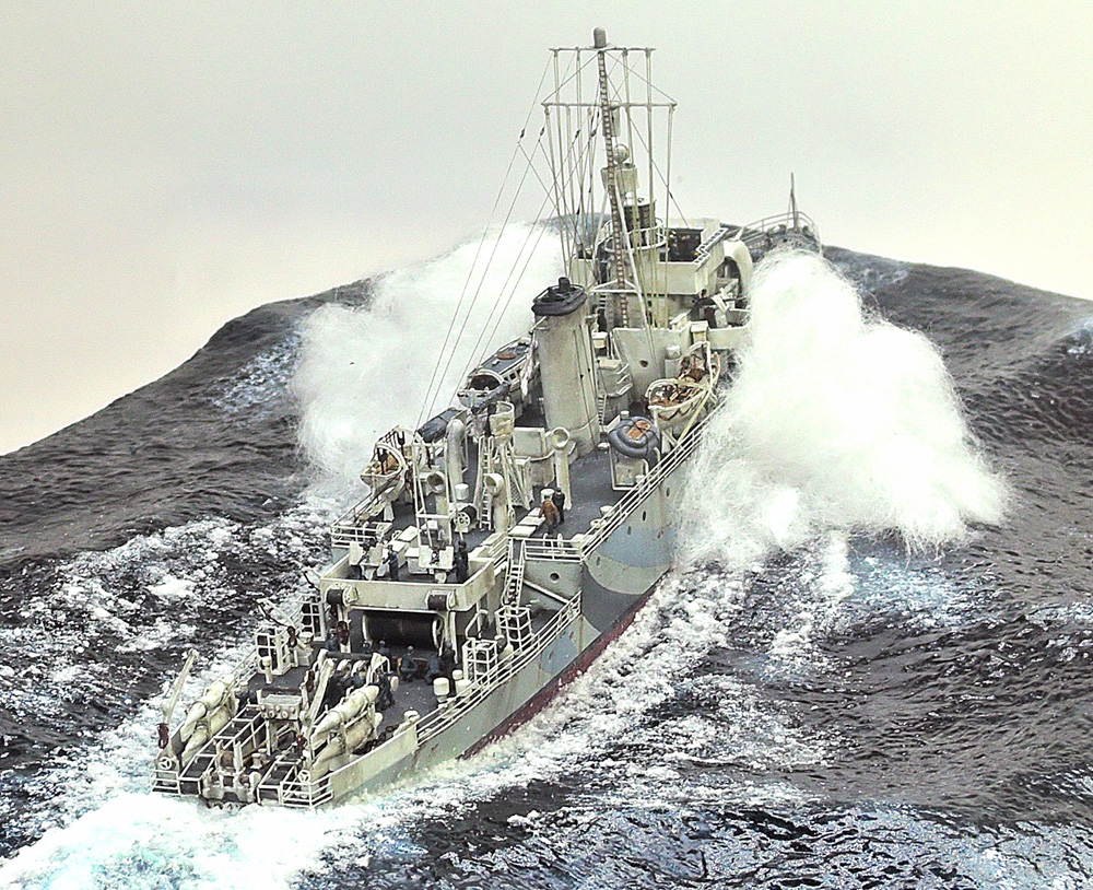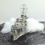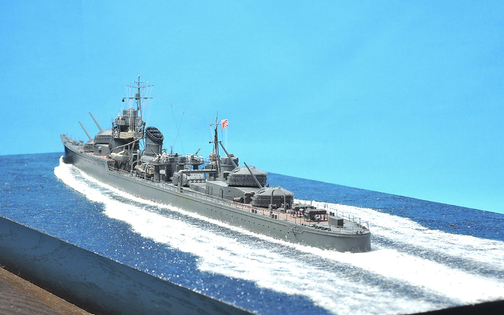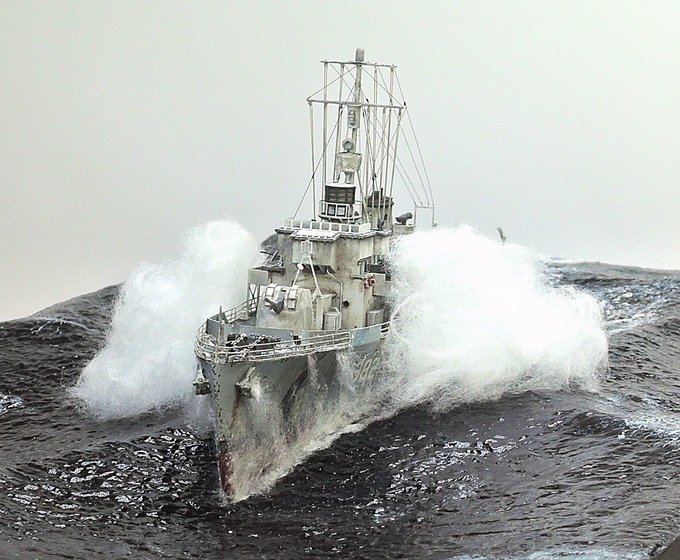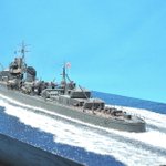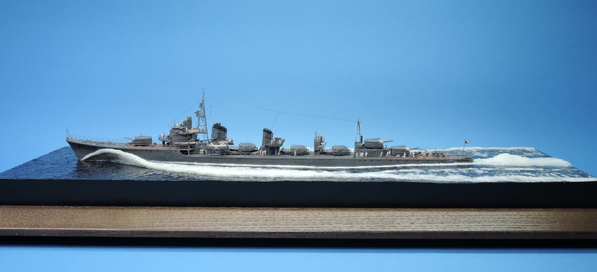 #新規フォロワーさん向けに過去作を上げてみる 忙しくて製作できない時に救いのハッシュタグ マックスファクトリー 1/350 島風 盛大に波を立てる公試時の写真をモチーフに。 白波にボリュームを出すため綿を使用。