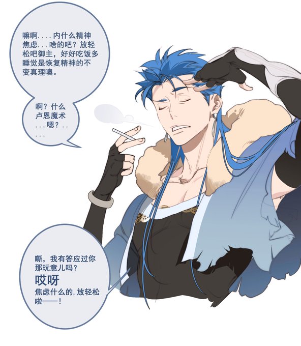 #FGO #库丘林 #红a “第一次见面的时候?” “这个嘛……” “真是个不讨喜的家伙——这种感觉吧?”