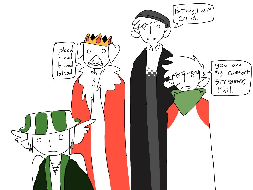 Phil and his wonderful children. #philzafanart #technobladefanart #wilbursootfanart #tommyinnitfanart #sbifanart