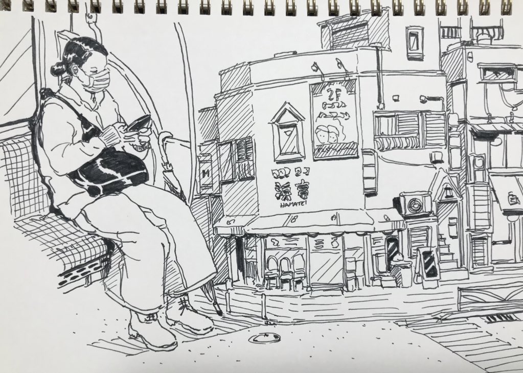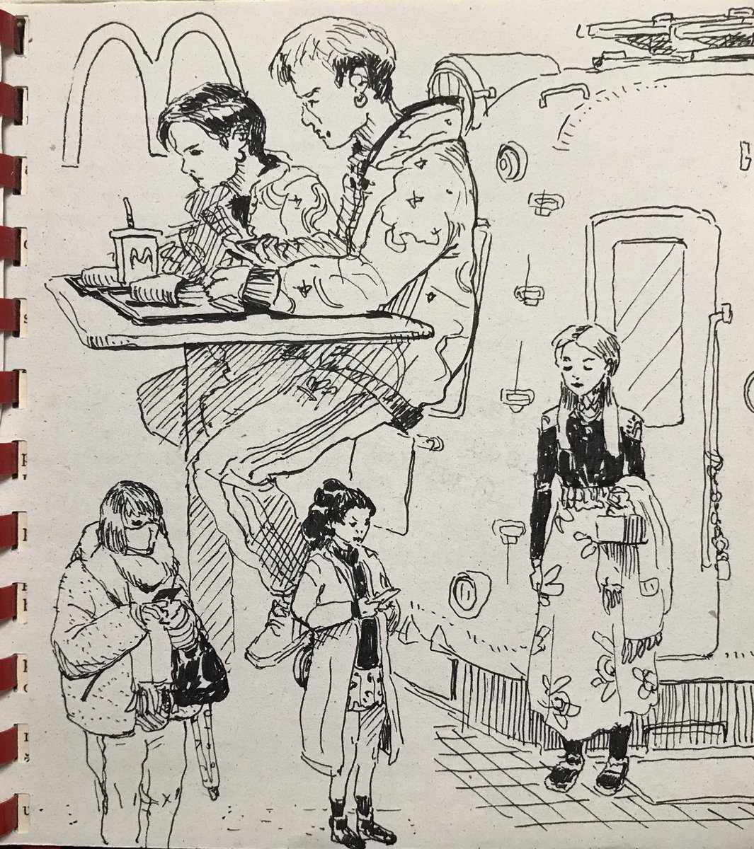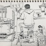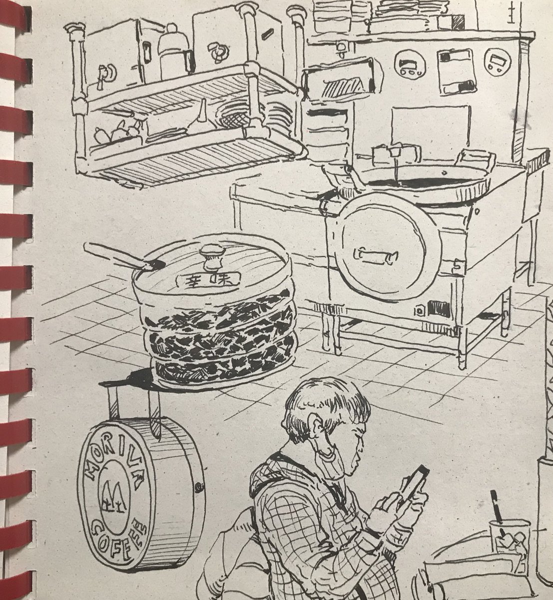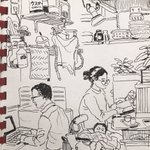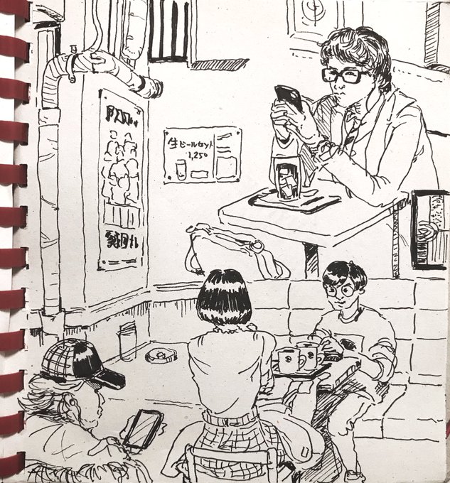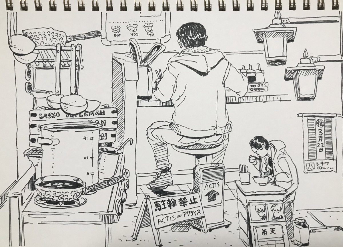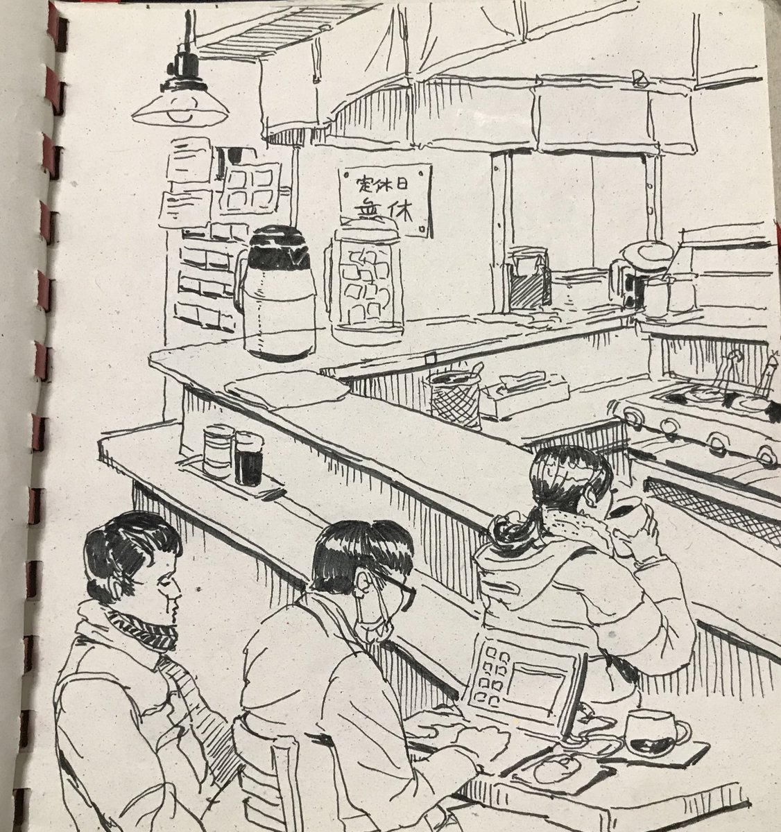 今後、生活のスケッチ描き辞めるし、想像力からのみ絵を描き始めると思う #スケッチブック #日々描く #一日一絵 #ペン画 #なか卯 #車内 #モリバコーヒー #池袋 #urbansketchers #inkdrawing #sketchbook