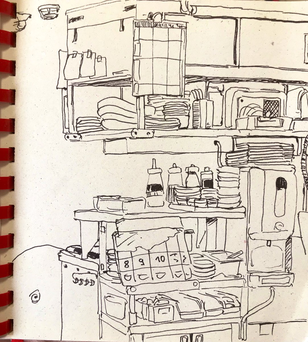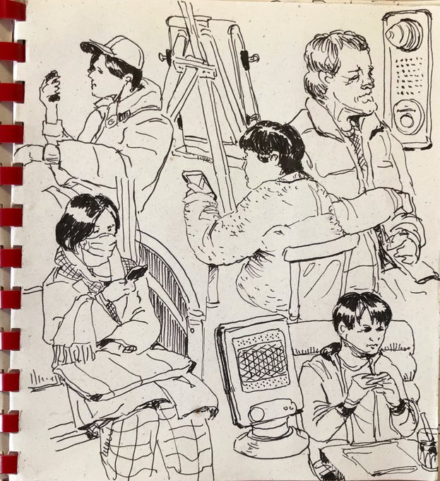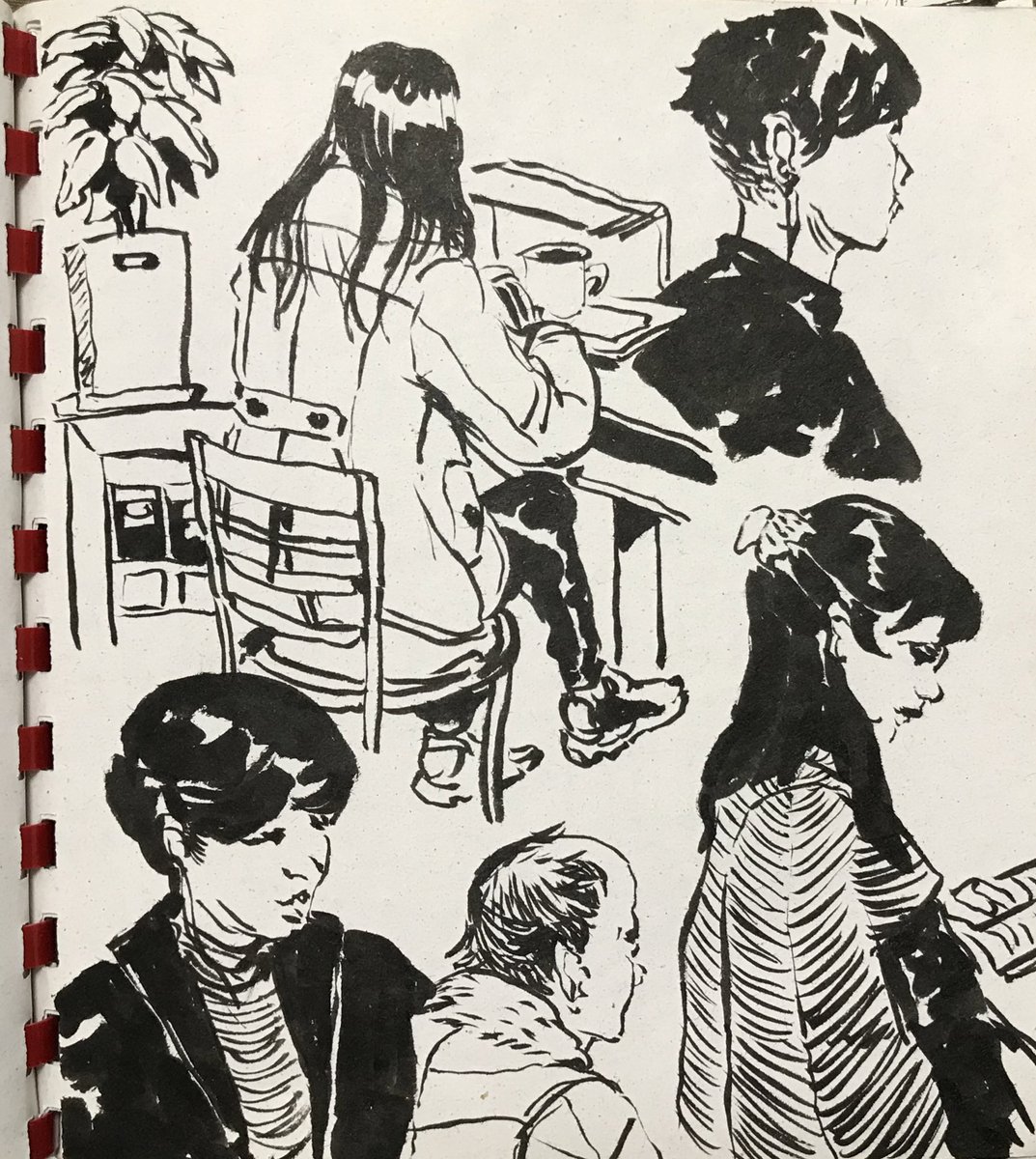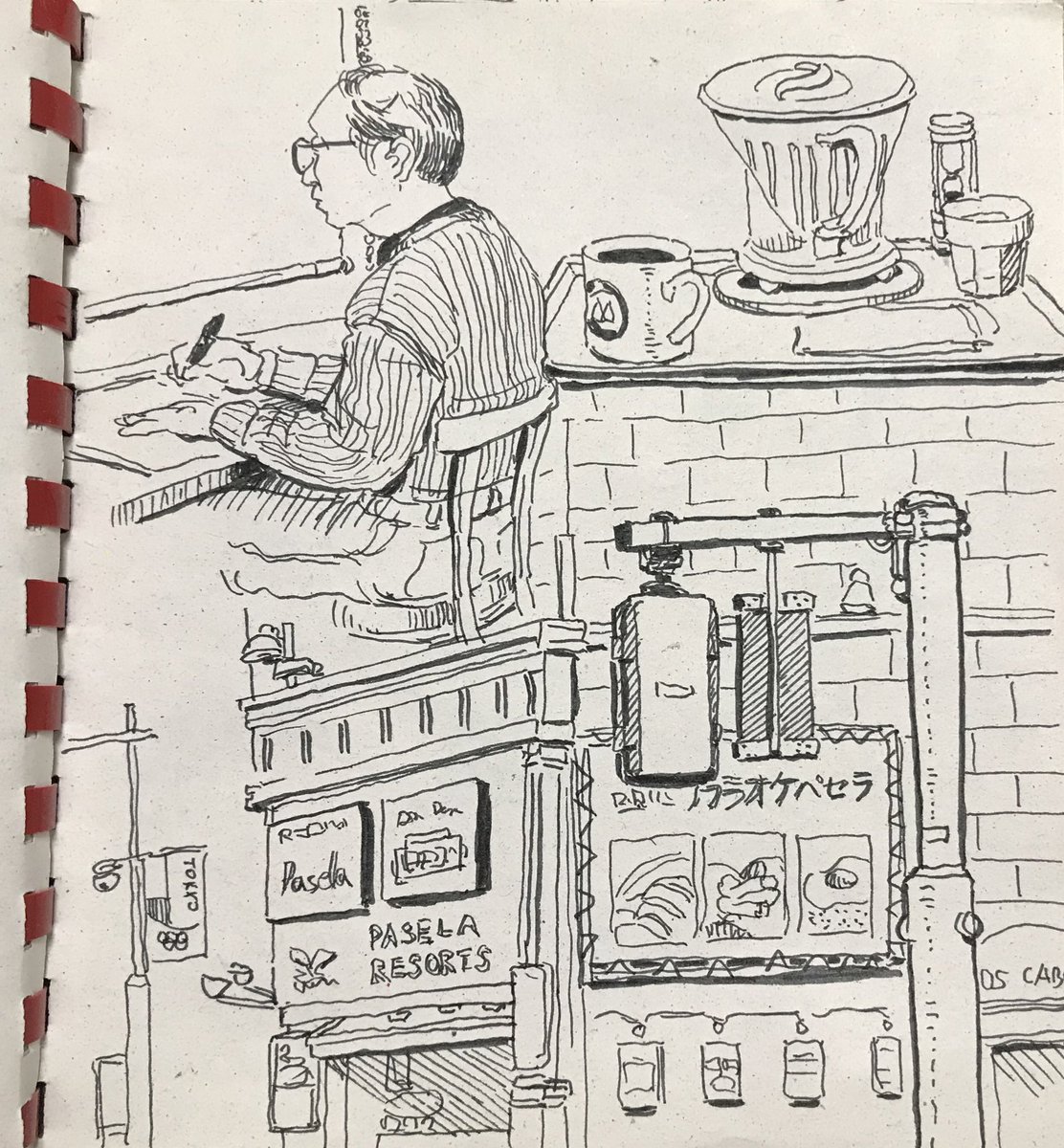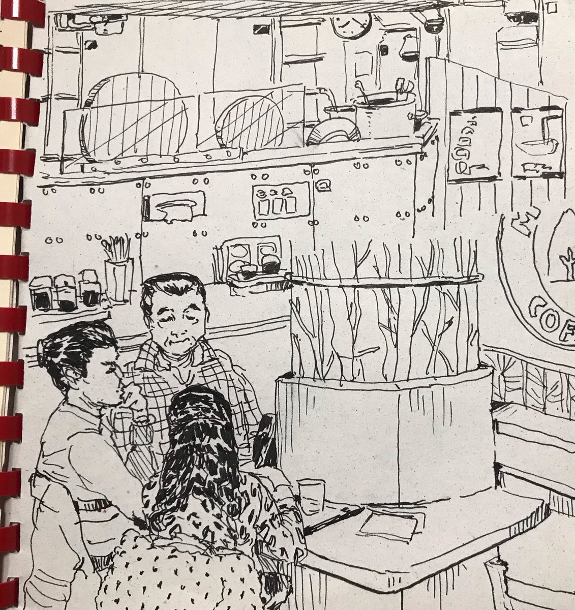 今後、生活のスケッチ描き辞めるし、想像力からのみ絵を描き始めると思う #スケッチブック #日々描く #一日一絵 #ペン画 #なか卯 #車内 #モリバコーヒー #池袋 #urbansketchers #inkdrawing #sketchbook