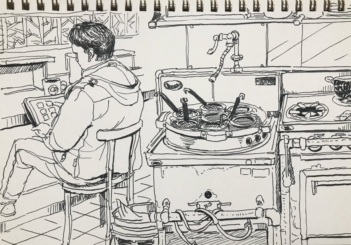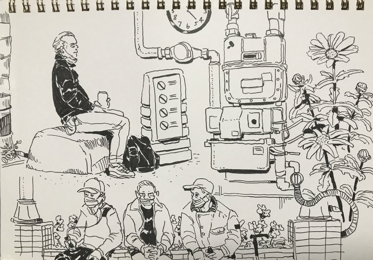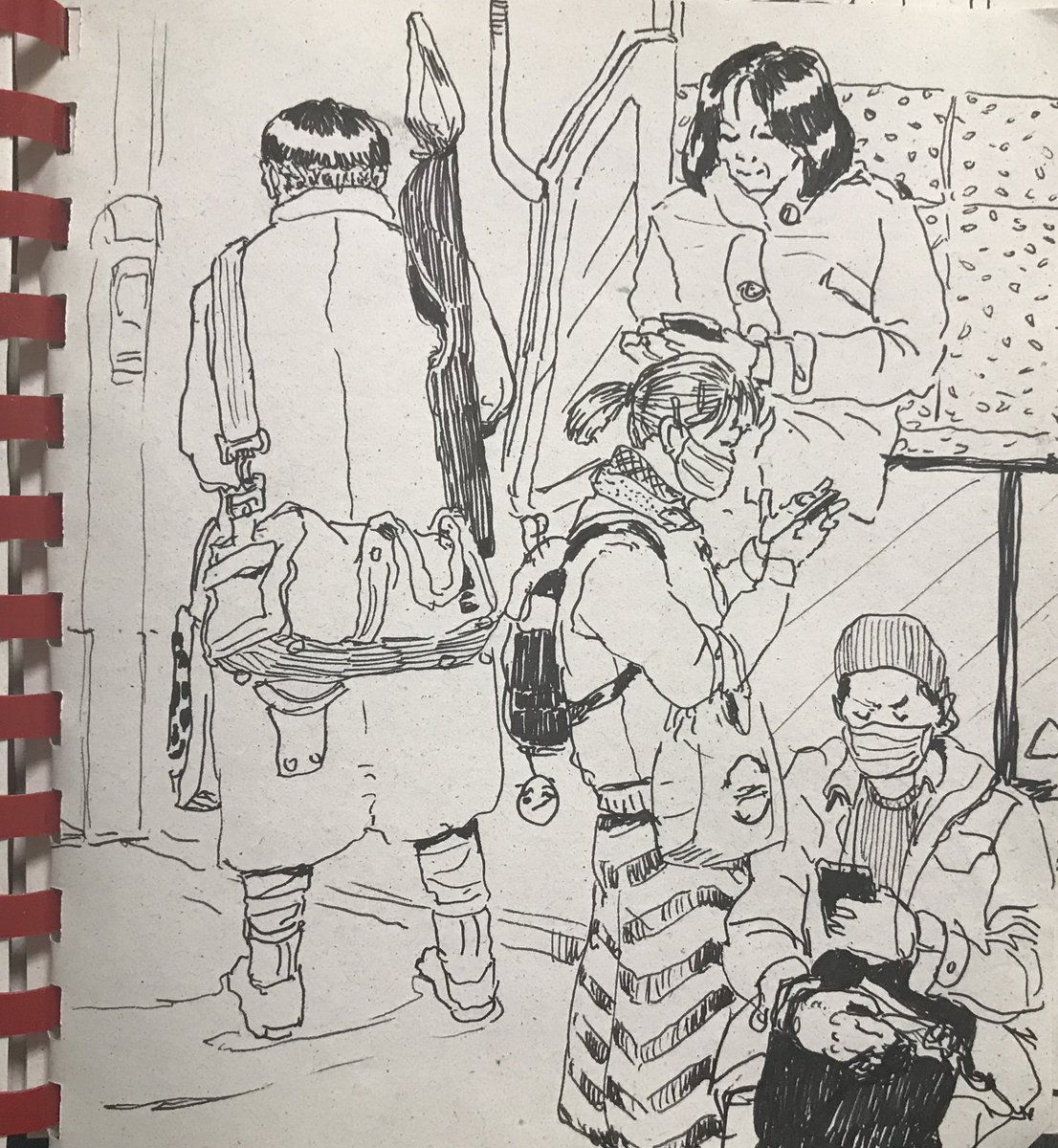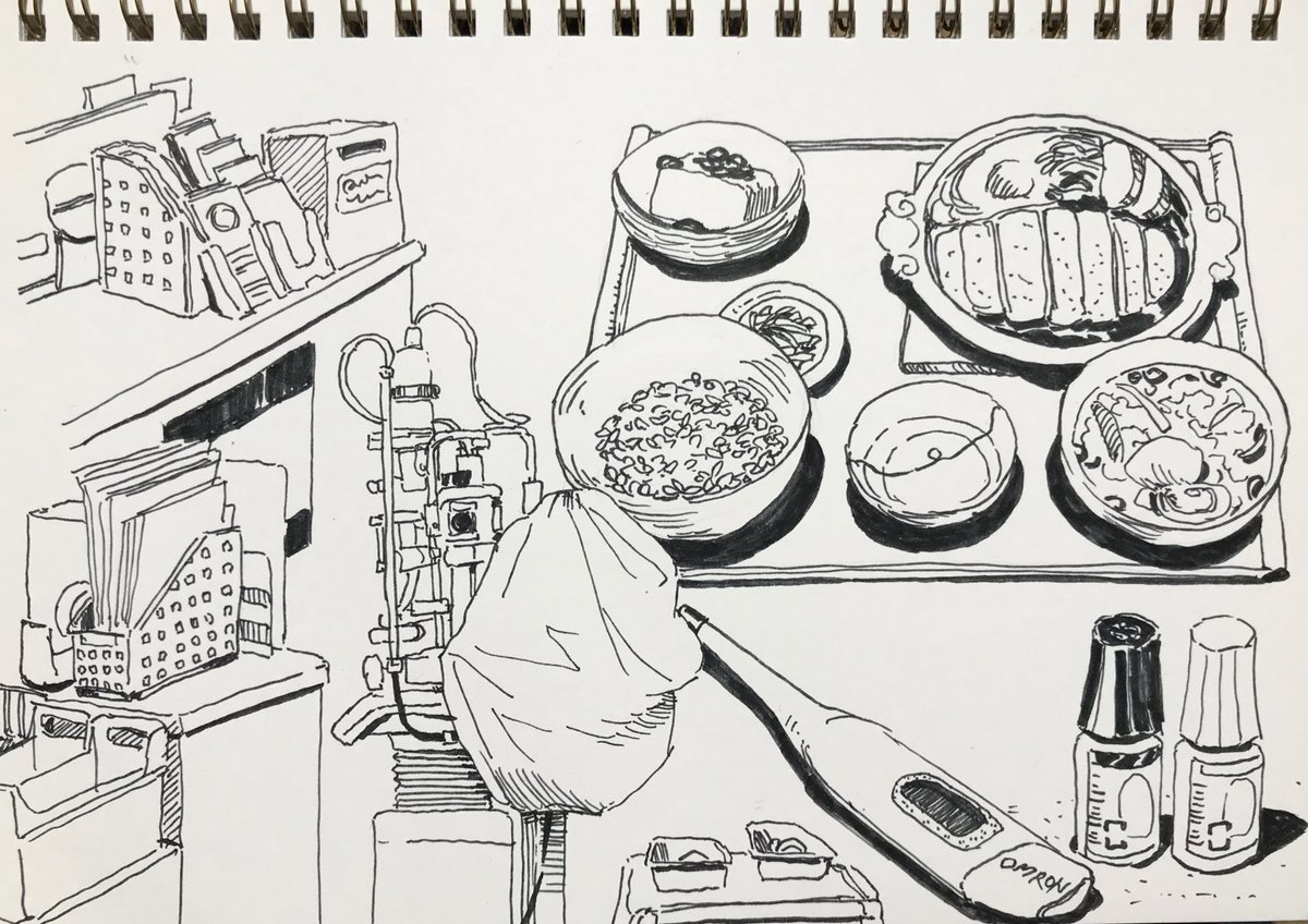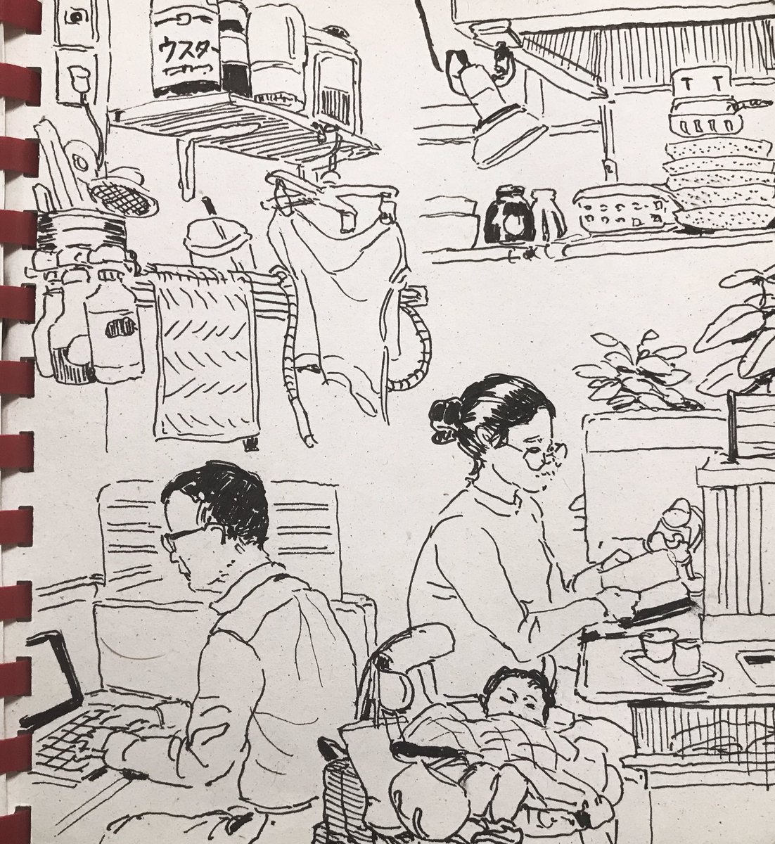 今後、生活のスケッチ描き辞めるし、想像力からのみ絵を描き始めると思う #スケッチブック #日々描く #一日一絵 #ペン画 #なか卯 #車内 #モリバコーヒー #池袋 #urbansketchers #inkdrawing #sketchbook