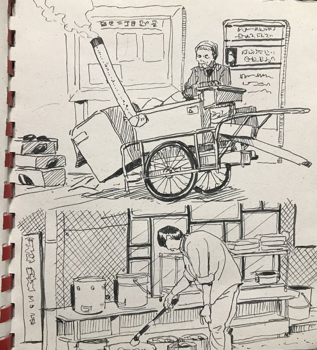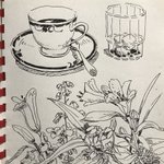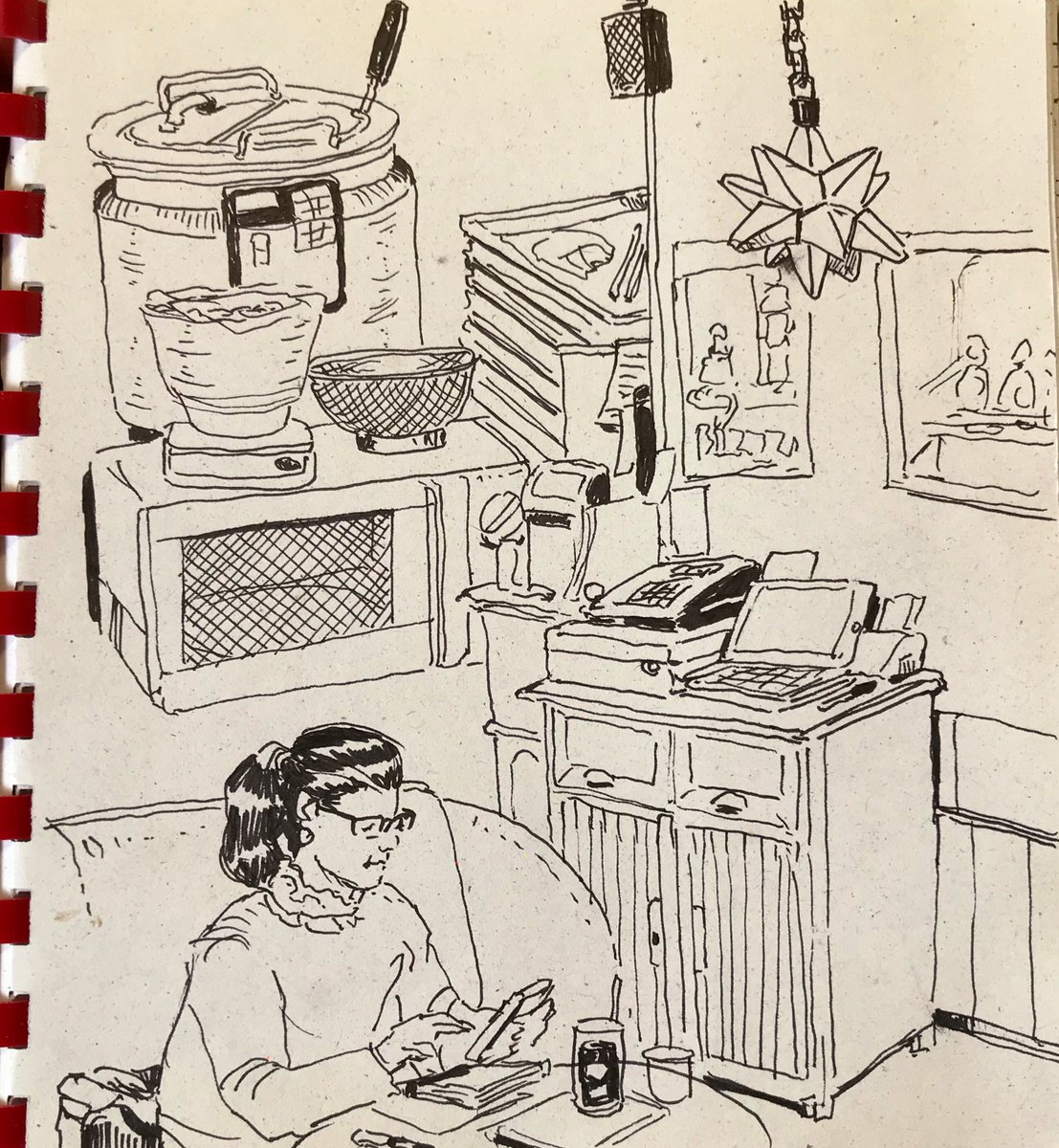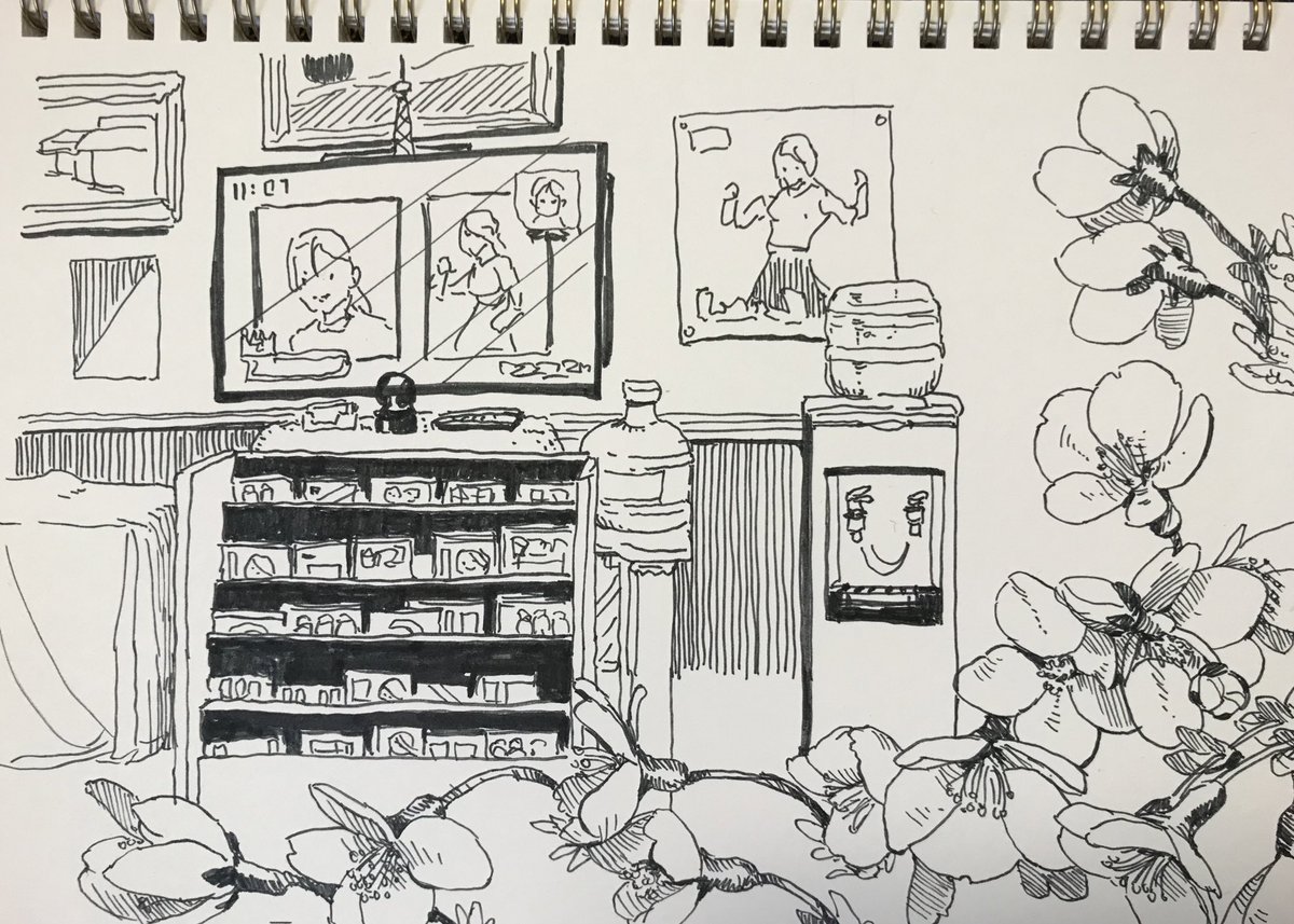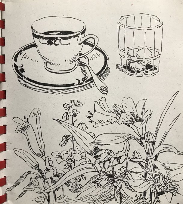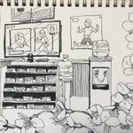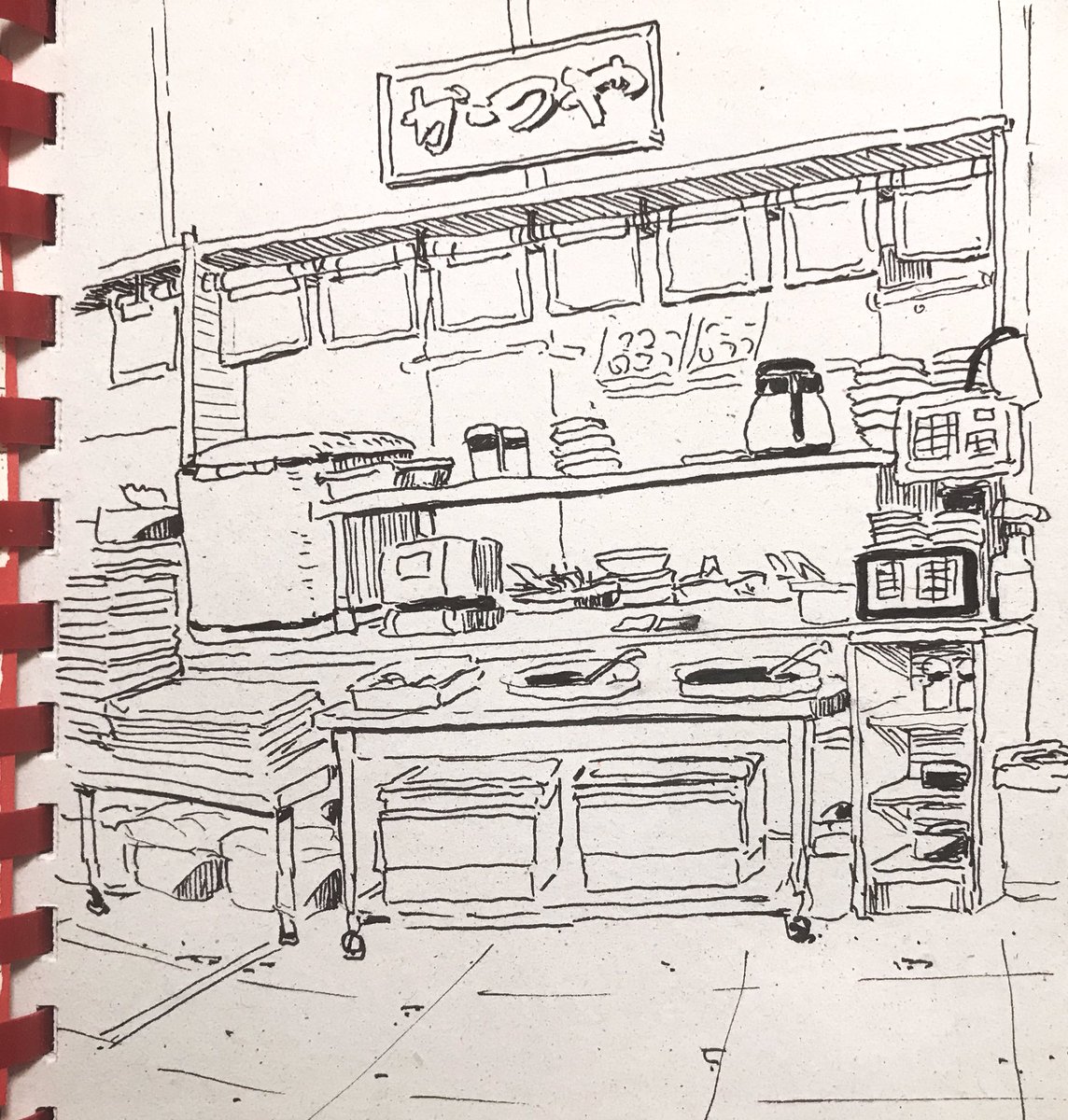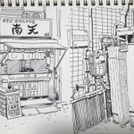 ラスト📒 最後のページだし、金曜日にもドイツに戻るし。来週から生活が変わるのでスタイルも変えたほうがいい #一日一絵 #日々描く #ラーメン屋 #池袋 #花 #ペン画 #スケッチ #urbansketchers #inkdrawing #sketchbook #tokyo