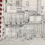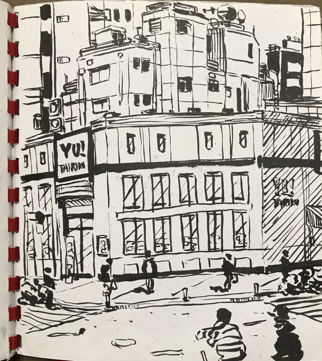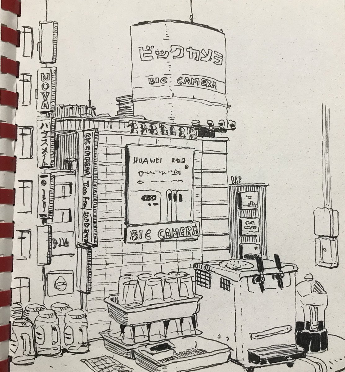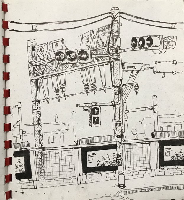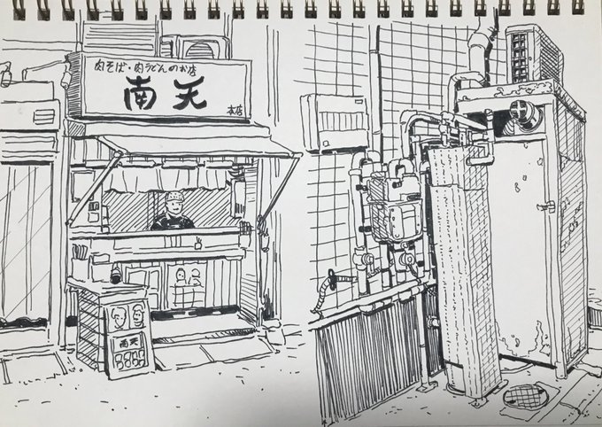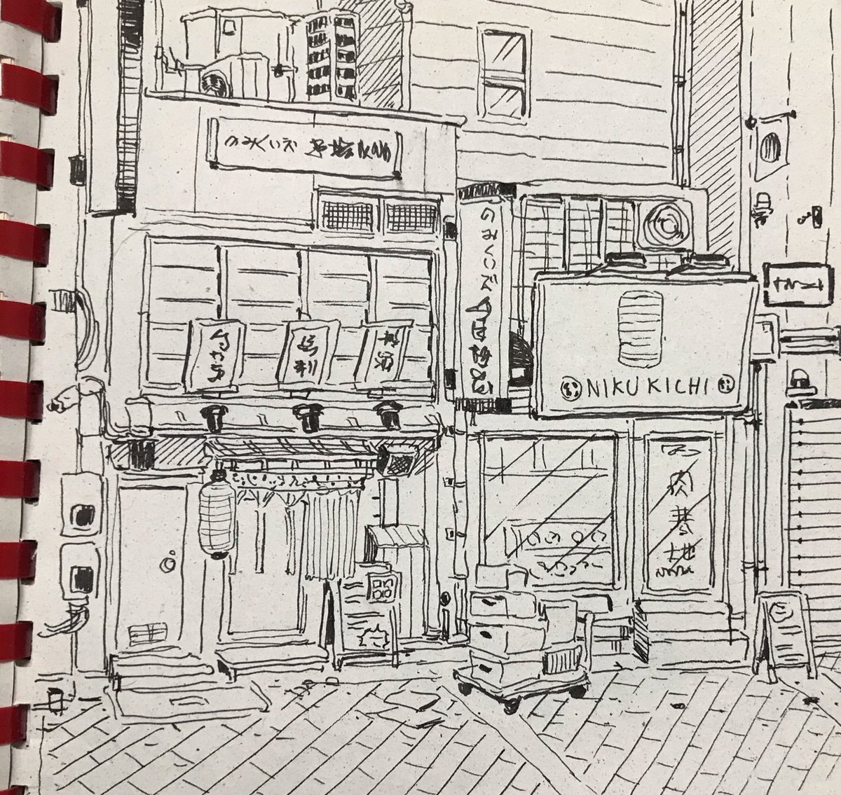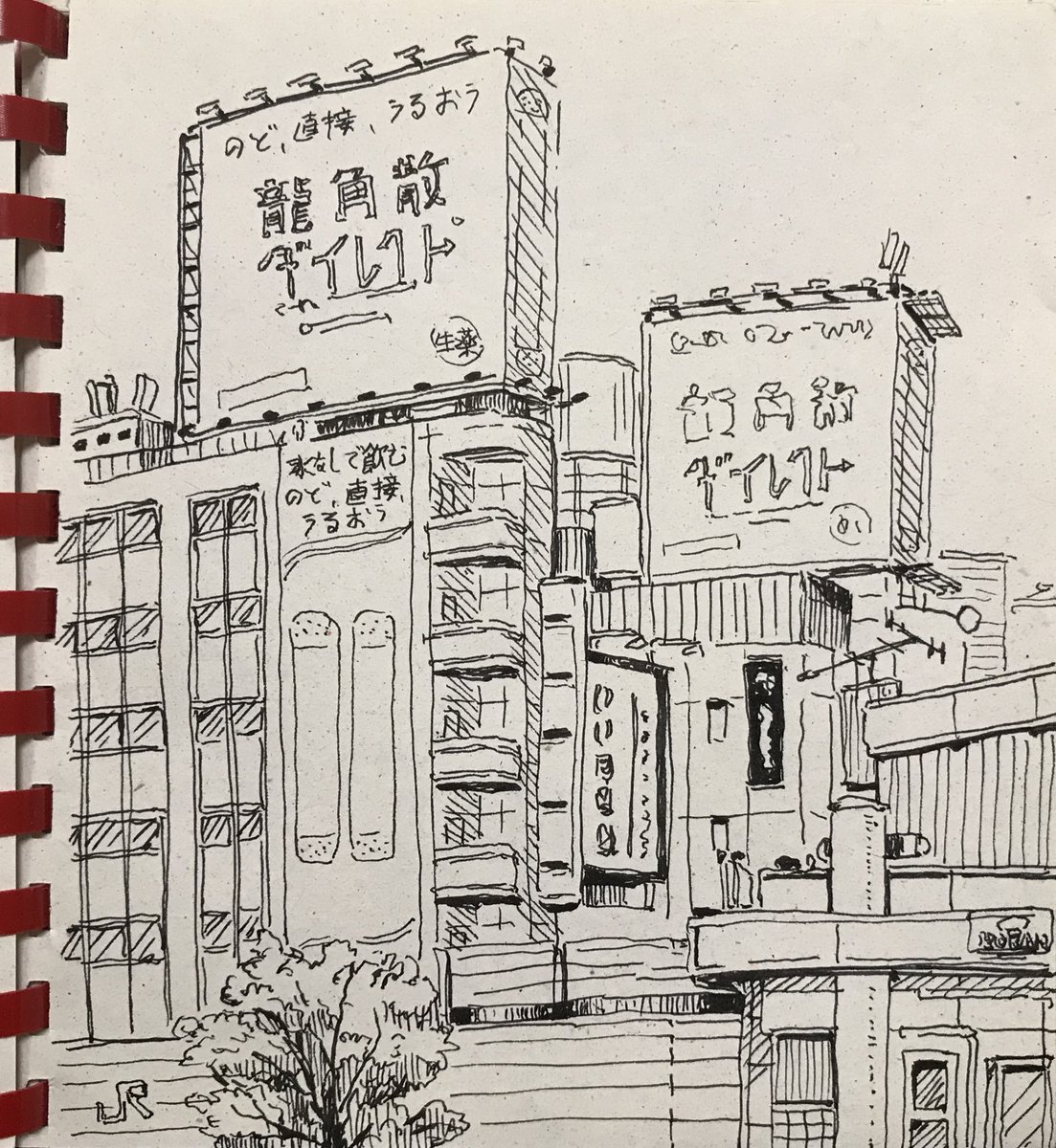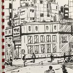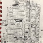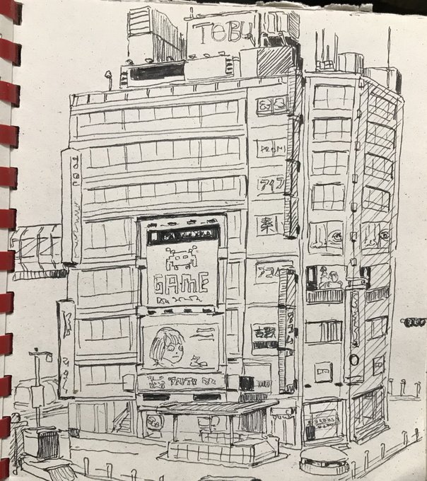 今朝ゆっくり休んだ…外でまだ寒いのに、主に都市景観描いた #一日一絵 #日々描く #池袋 #モリバコーヒー #ペン画 #スケッチ #看板 #肉基地 #urbansketchers #inkdrawing #sketchbook #cityscape