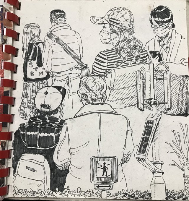 今日久しぶり渋谷に行って、買い物の後ハチ公で待ってる人や景色を描いた📒🖊 #渋谷 #スケッチ #日々描く #一日一絵 #ペン画 #カフェド巴里 #マック #看板 #ハチ公 #urbansketchers #linedrawing #inkdrawing