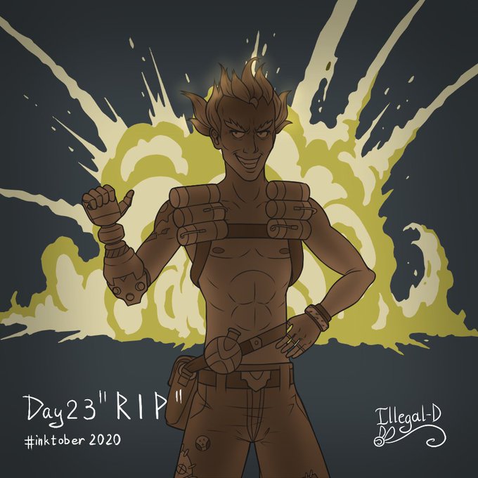 #Inktober Day 23: RIP 💥 "It's hard to just sit around knowing there's someone out there that needs to be blown up! Rest in pieces."💣 #junkrat #jamisonfawkes #overwatch #inktober2020 #inktoberrip #overwatchfanart