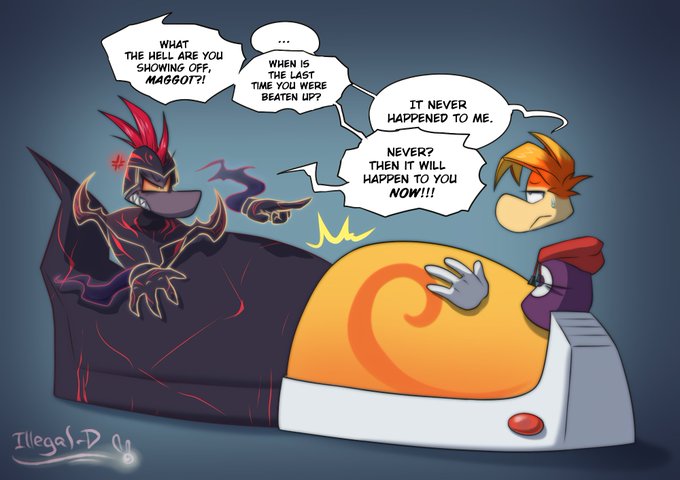#Inktober Day 18: Trap ♟️ "My, my, who fell into my trap? It's too bad my Master hasn't introduced ourselves yet so I had to organize this in order to meet you, The Legendary Rayman..." #rayman #illegalilya #james #chukka #inktober2020 #inktobertrap #raymanfanart #raymanoc