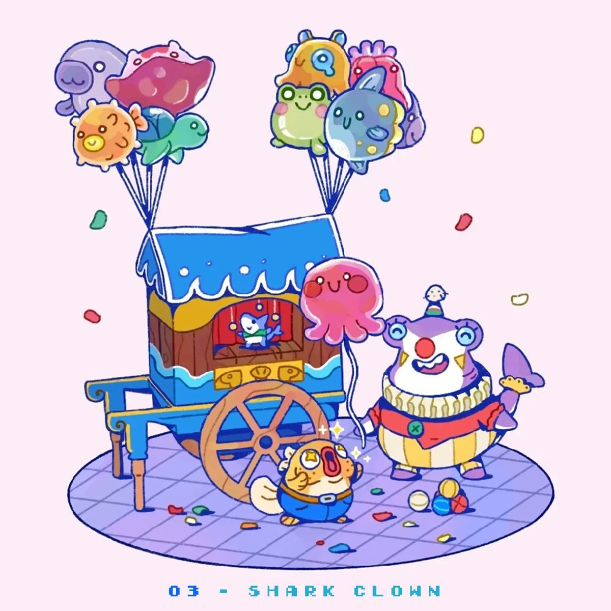 Here is our participation for the 3rd day of #Sharktober2022, Shark Clown!🦈🎈 #sharktober #illustration #characterdesign