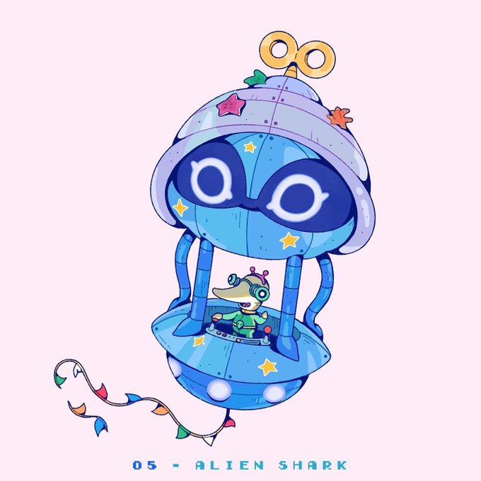 Here is our illustration for the 5th day of #Sharktober2022, Alien shark 🛸👽! #Sharktober #illustration #UFO