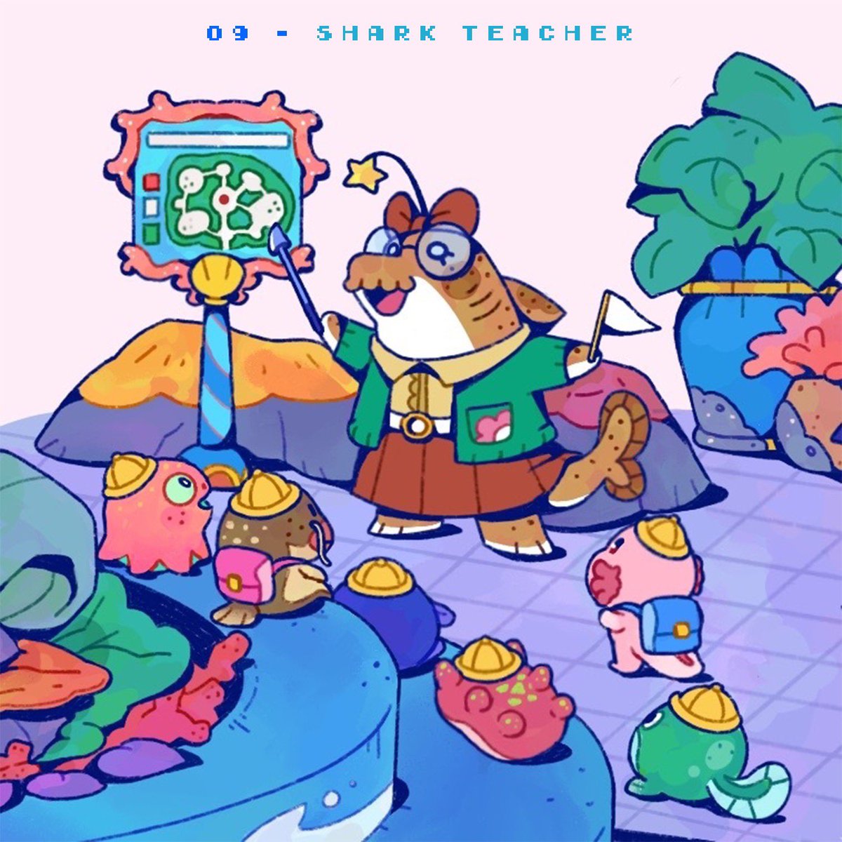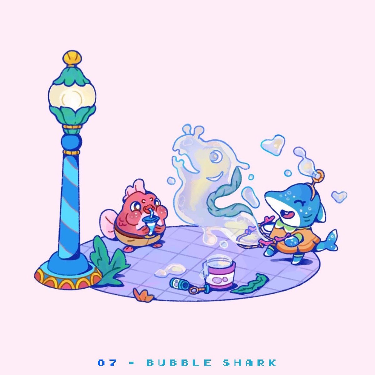 Our illustration for the 7th day of #sharktober2022 : Bubble Shark 🫧 ! Ask her for any animal, she'll make a bubble version of it ! 💕 #Sharktober #illustration