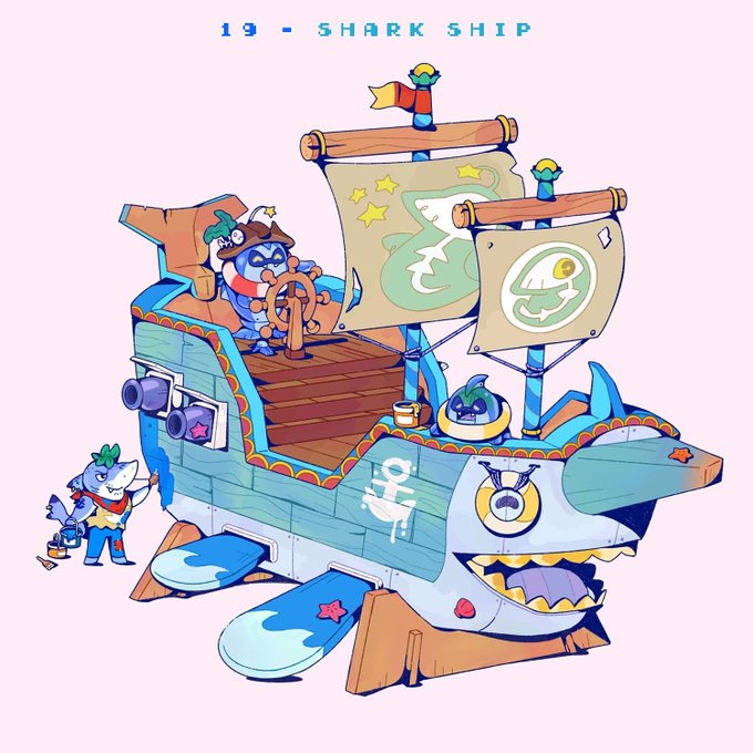 Here is our participation for #sharktober2022 : Shark Ship! It was about time to refurbish the boat and its animatronics (feat. Pirate Shark from day 1)! ⚓️🛥 #sharktober #illustration #Pirates