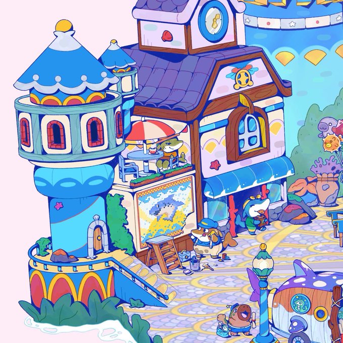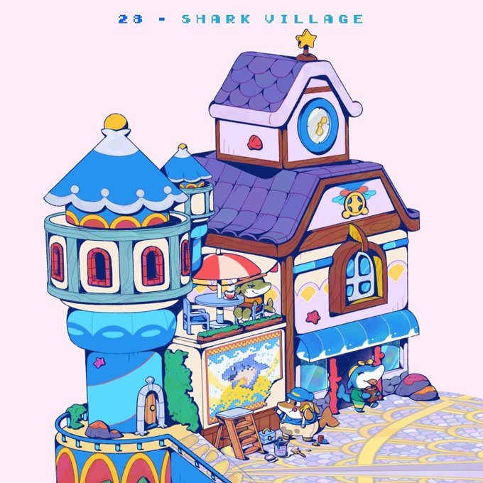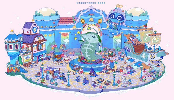 Here is our illustration for the 28th day of #sharktober : Shark Village! 🏡☕️ #sharktober2022 #illustration #Cute