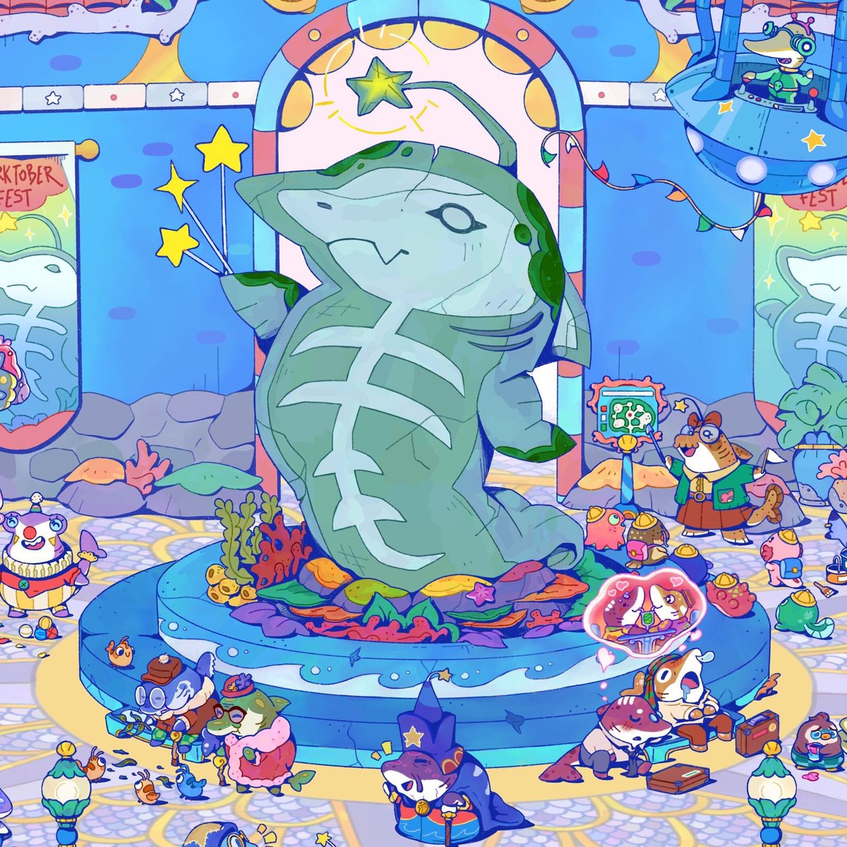 Better late than never so here's our illustration for the 31st day of #sharktober2022 : Abyssal Shark! Everyone is coming to celebrate them at the Sharktober Fest! 🎉🗿🦈 #sharktober #illustration #art