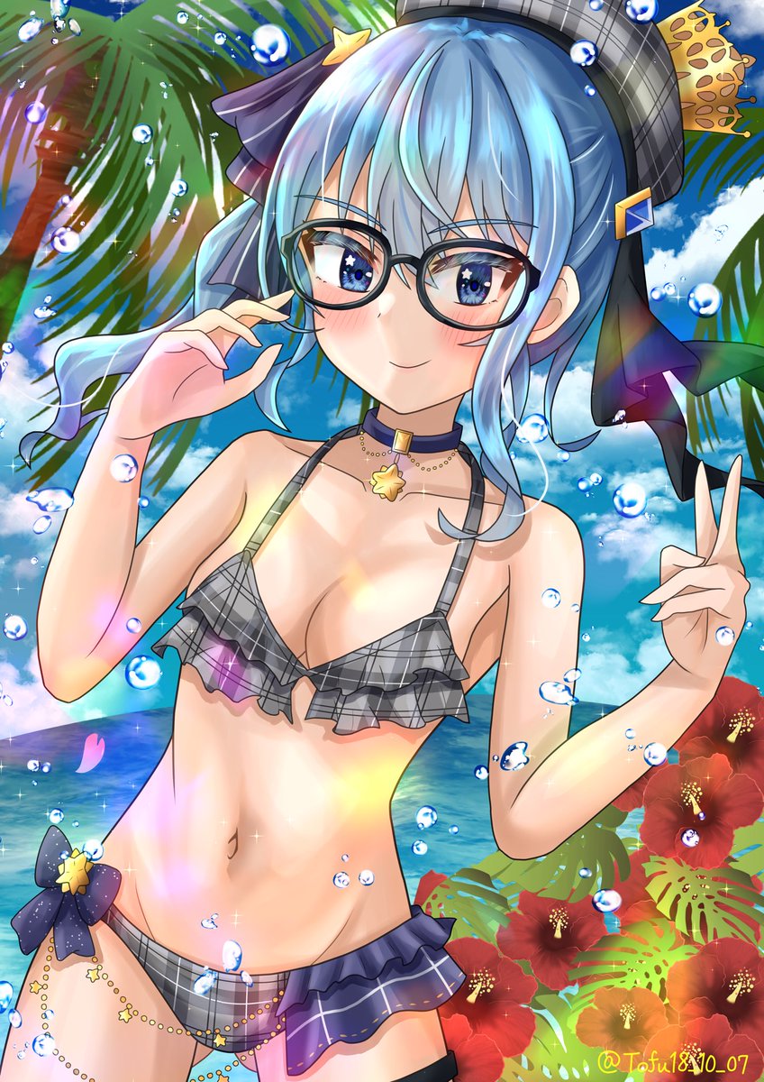 1 2 眼鏡OFF差分です☄️ #ほしまちぎゃらりー #ビキニの日 23/07/05 18:03