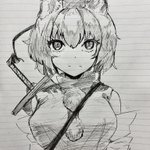 3 12 #深夜の真剣お絵描き60分一本勝負 犬走椛 50分 帰省中なのでアナログでやりました 久しぶりにやると難しい… 22/05/04 23:18