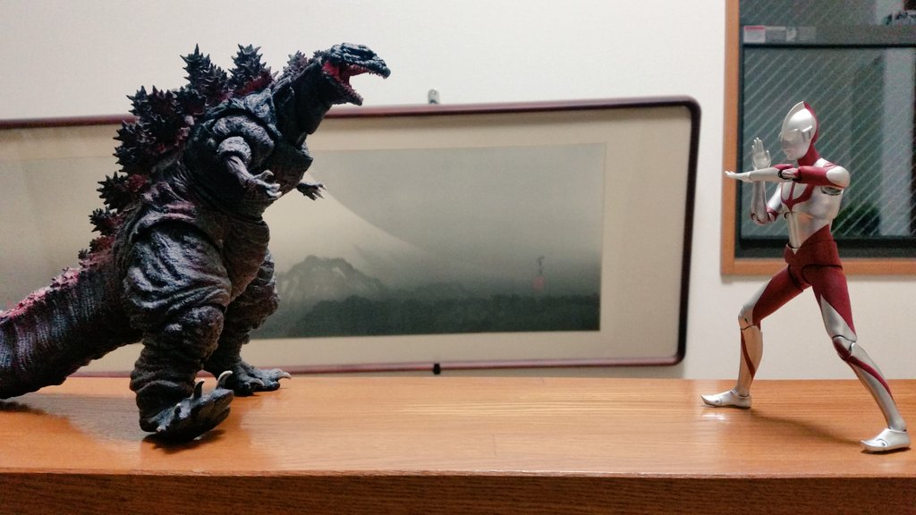 実は昨夜からワクワク((o(^∇^)o))とドキドキ┣¨キ(〃 ゚3゚〃)┣¨キでよく眠れず、こんな茶番シン対決(笑)なんて写真を撮りまくっていました。 #シンウルトラマン #シン・ゴジラ #シン・ウルトラマン #フィギュアーツ写真部