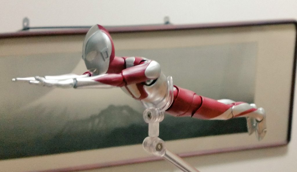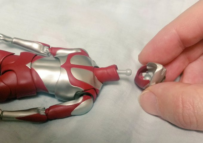 次に飛行ポーズをパシャリ‼ 実は首のそのままでの稼働では上を向かないため、首のジョイントを外して上向きに置き換えています ※ジョイントを外すときは自己責任でお願いします #シンウルトラマン #シン・ウルトラマン #フィギュアーツ写真部