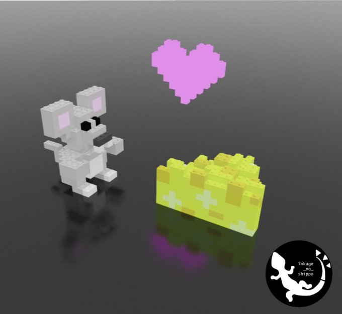 ねずみとチーズ(*^^*) Lego風☺️ #magicavoxel #voxelart #voxel