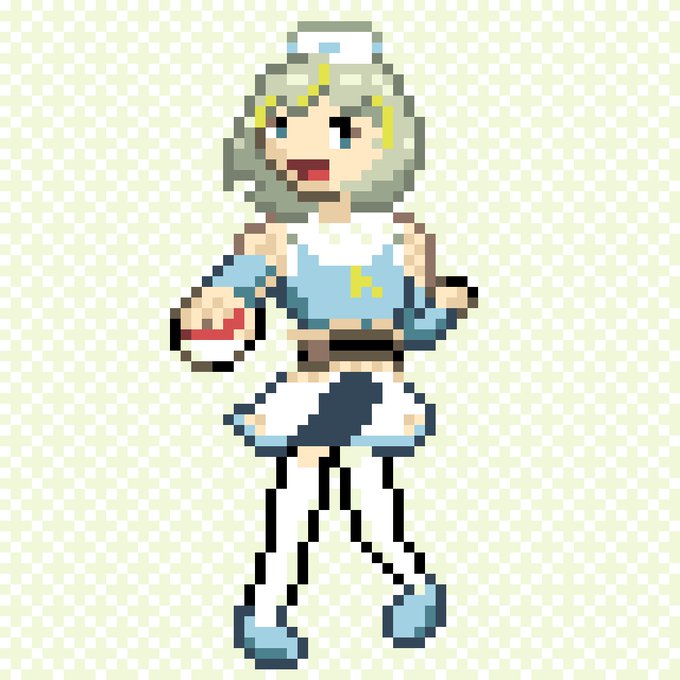 かんごしのおねえさん が あらわれた! 「ねえ キミもいっしょに とりポケモン スナップしない?」 #こずちるアート #dotpict