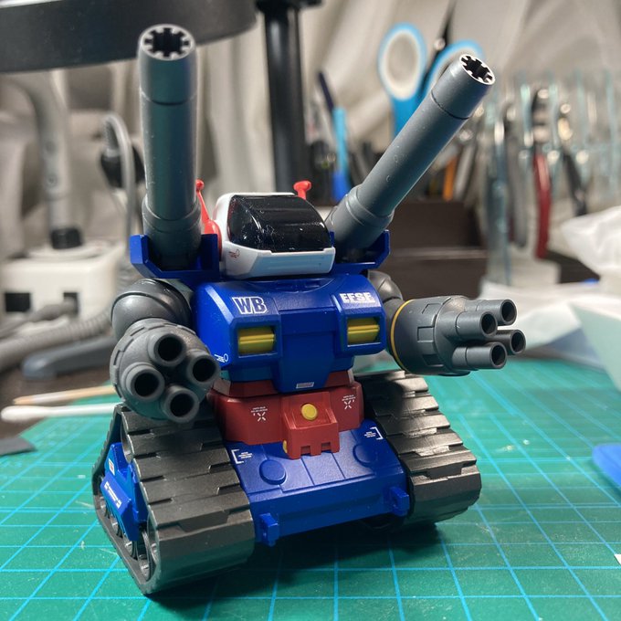 #sdガンタンク ひとまず完成! キャノピーは中の人を塗る技量が無いので、内側をブラック 外からクリアブルー吹きました。 #ガンプラの画像貼るとRTされると聞いて #ガンプラ好きと繋がりたい #ガンプラ #ガンタンク