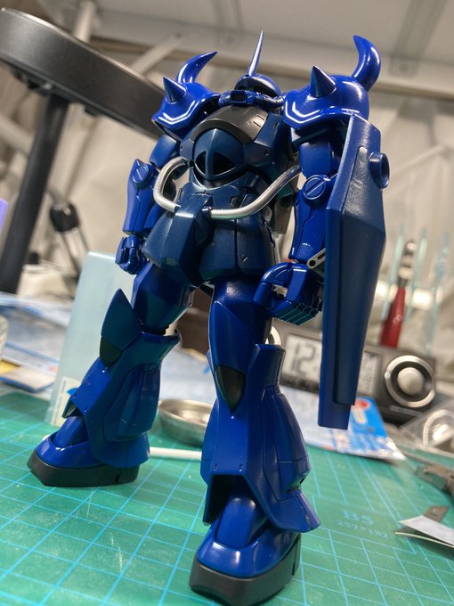 色塗りました。 もっかいばらして 墨入れ デカール貼り トップコート 動力パイプは形状やり直し #グフ #ザクとは違うのだよ #ガンプラ #ガンプラ好きと繋がりたい #ガンプラの画像貼るとRTされると聞いて