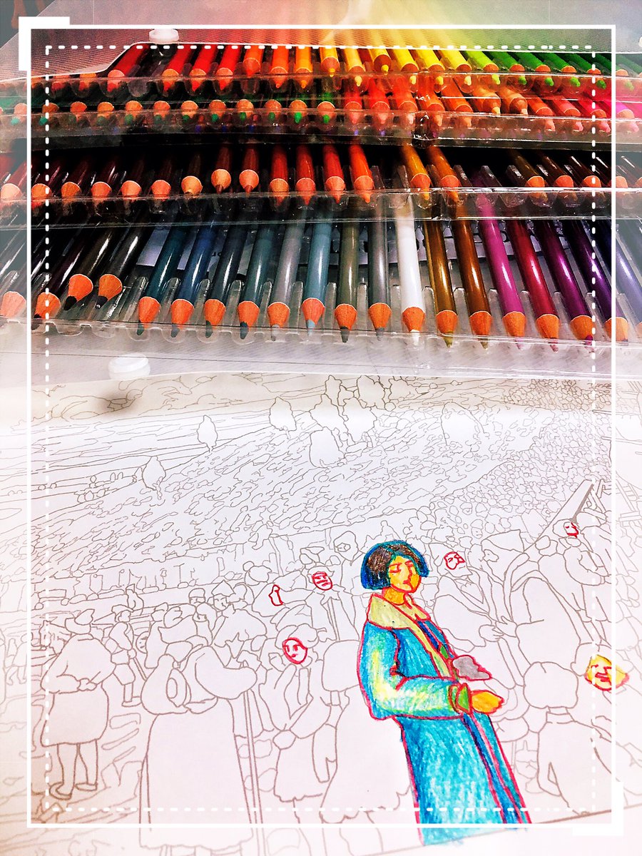 0 3 #パナソニック汐留ミュージアム で以前頂いた、特製の #塗り絵 を160色の #色鉛筆 で思うがままに色付け→思った通りにはならないんだけど💦 あ〜楽しぃ🥰 #外出自粛 #ぬりえ #大人の塗り絵 #完成未定 #きっと新しい趣味 #大人タイム 20/04/05 00:19