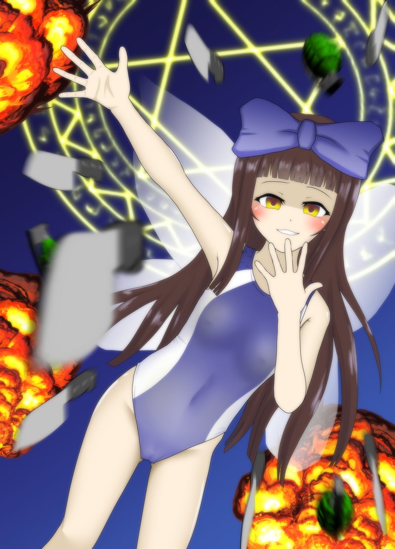 #深夜の真剣お絵描き60分一本勝負 #東方競泳水着部 「ほらほら、他所見してると当たっちゃいますよ?」 2200-2340 スターサファイアって三妖精だったと思うんだけど、どんな子だっけか? え、包丁や爆弾を使った悪戯…? は、腹黒キャラ…だっけか…? 光の妖精らしいけど、闇属性になってもらった