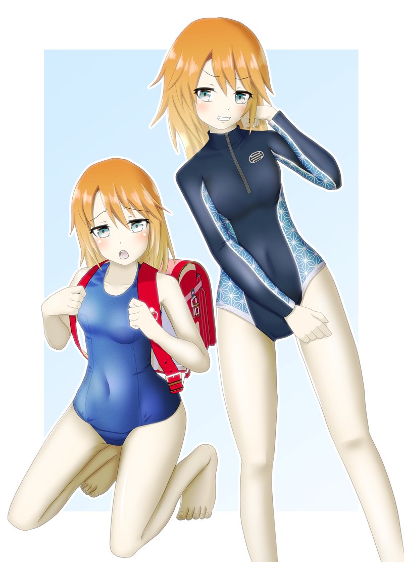 滑り込みだけど祝わせてくれー! 着て欲しい服を募集したらスク水ランドセルとウェットスーツだったので、着て貰いました! 梅雨明けで暑いからね、涼しくなろうね! #結城晴誕生祭2021 #結城晴生誕祭2021