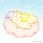 おつきさまのベッド #イラスト #色鉛筆 #猫