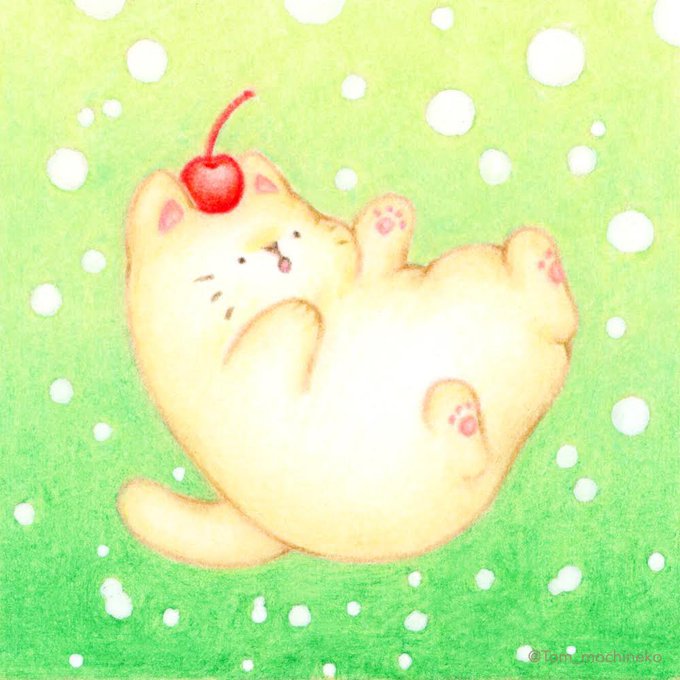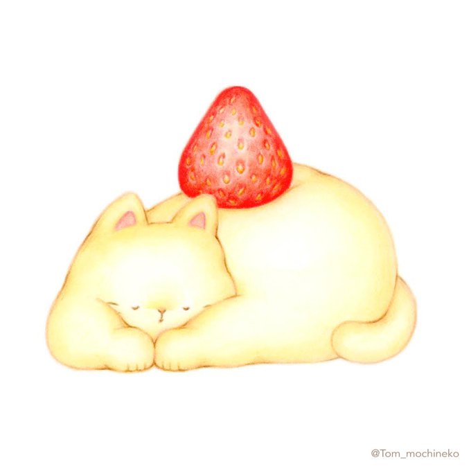 1 80 ショートケーキになったと思い込んでいるけどいちご大福にしか見えないねこ #イラスト #色鉛筆 #猫 22/05/30 20:36