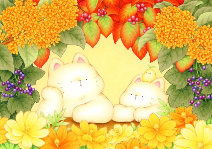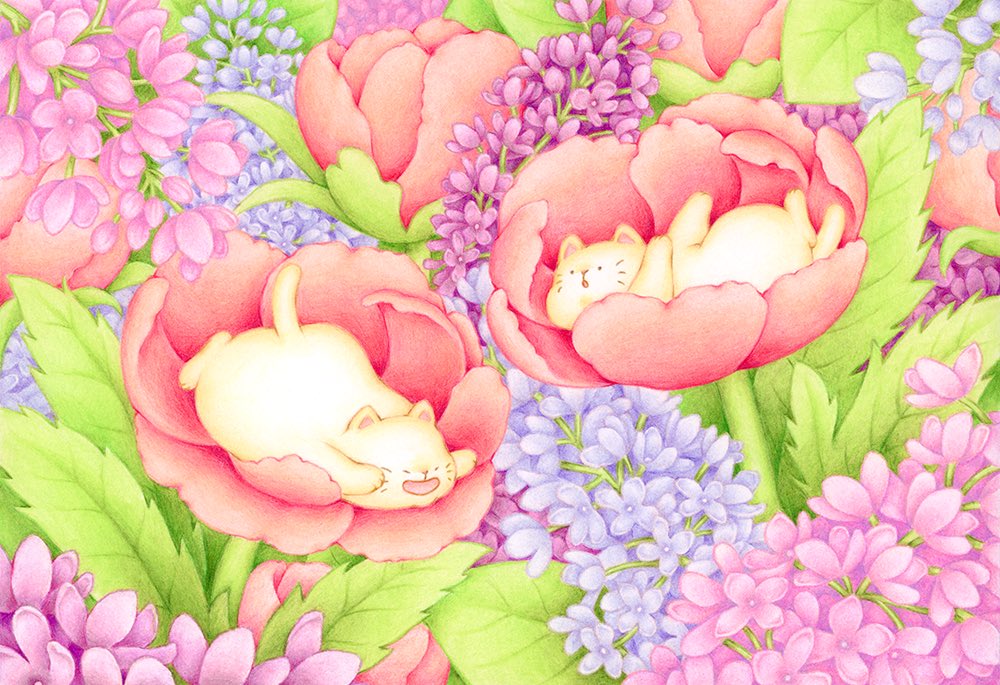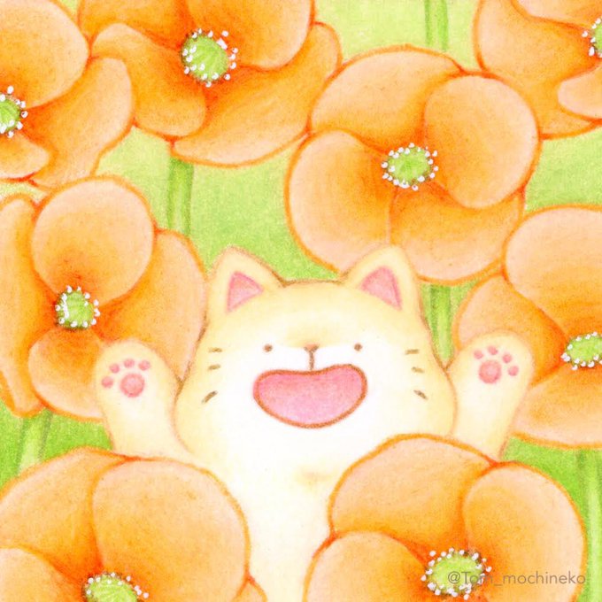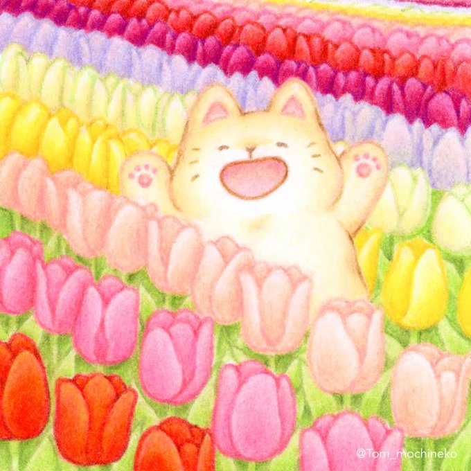 にじいろのおはなばたけ #イラスト #色鉛筆 #猫