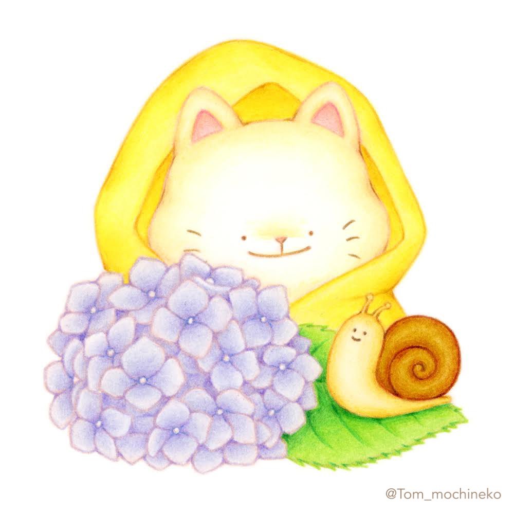 あめがふるとあえるね #イラスト #色鉛筆 #猫