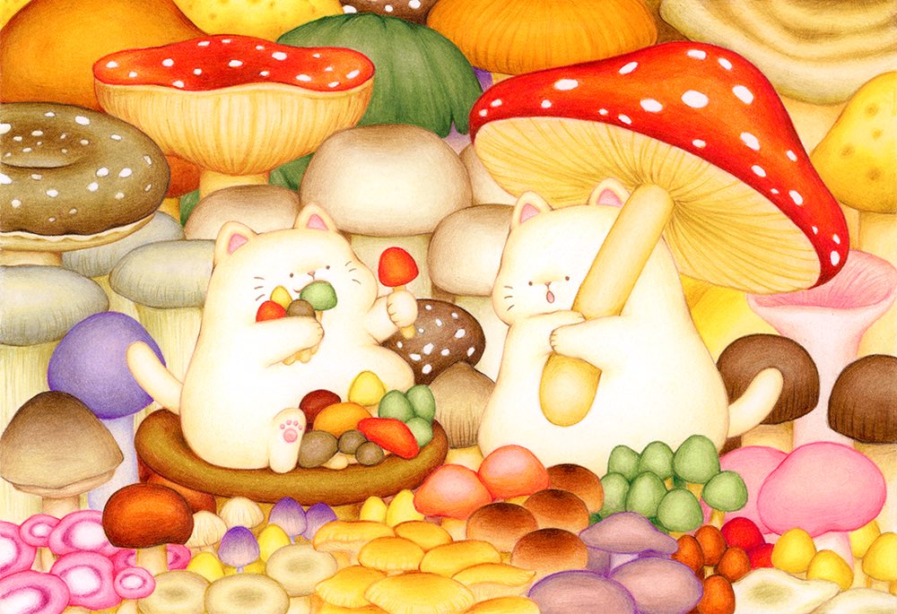 みつごおにぎり #イラスト #色鉛筆 #猫