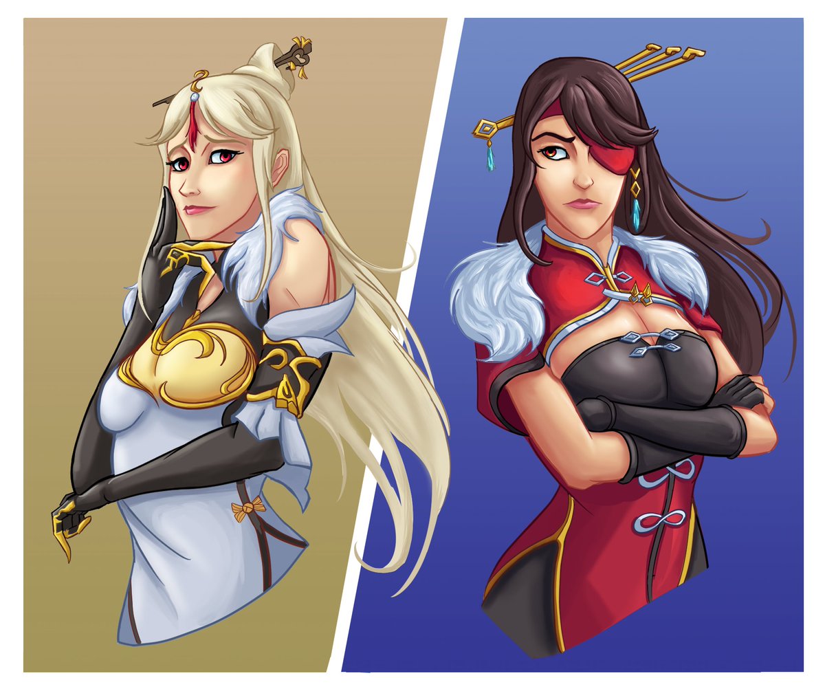 💛Ningguang💛 x 💜Beidou💜 Full drawing of this two amazing characters! They look so good together I couldnt resist drawing them 😊 #genshinimpactfanart #digitalillustration #genshinimpactart #ningguang #beidou