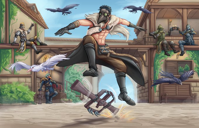 Comission I did for @epiclyholo, of his Oc Crow from Mordhau! 🛹 Had the amazing oportunity to draw him skating with a bear trap and doing some sick tricks 👌 #fantasyart #mordhau #dnd #dndart #commission #commissionart #illustration #fantasyillustration