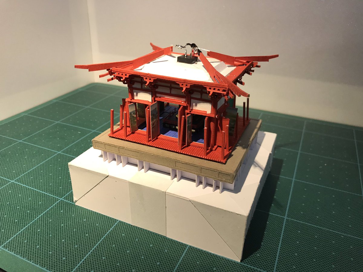 1 15 組み立てて、完成するまでがやっぱり楽しい。一年前を懐かしく思い出してます✨ #平等院 #鳳凰堂 #ペーパークラフト #模型 #寺院建築 #ジオラマ #紙 #クラフト 19/09/30 12:23