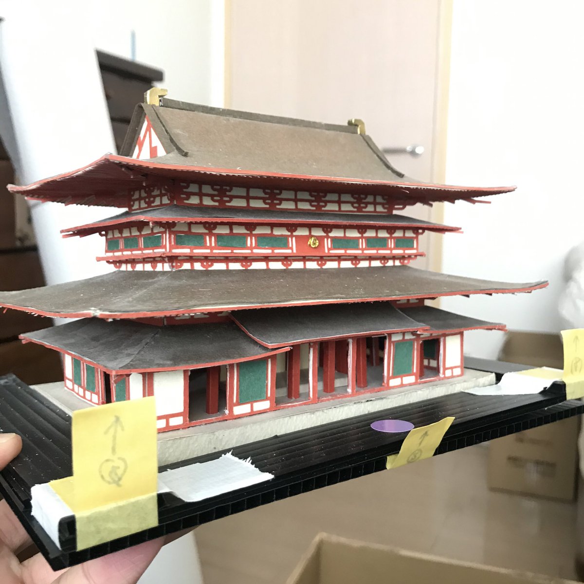 平等院鳳凰堂製作中写真が出てきて、懐かしくなりました。また何か作りたいという製作意欲が沸々と、 #平等院鳳凰堂 #ペーパークラフト