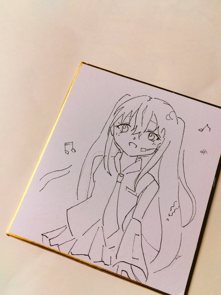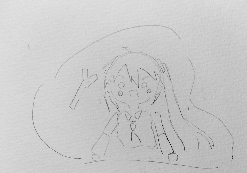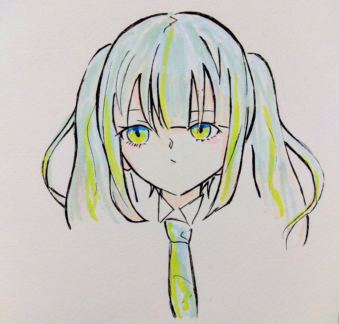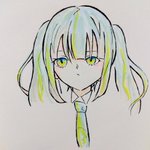 #絵描きさんと繋がりたい #絵描きさんフォロバ100 #アナログイラスト 色塗りました!ミクちゃん。 体描くの面倒くさくて頭とネクタイしか描いてないんですけど。 お母さんにうちわみたいだねって言われてからもうそれにしか見えない…。